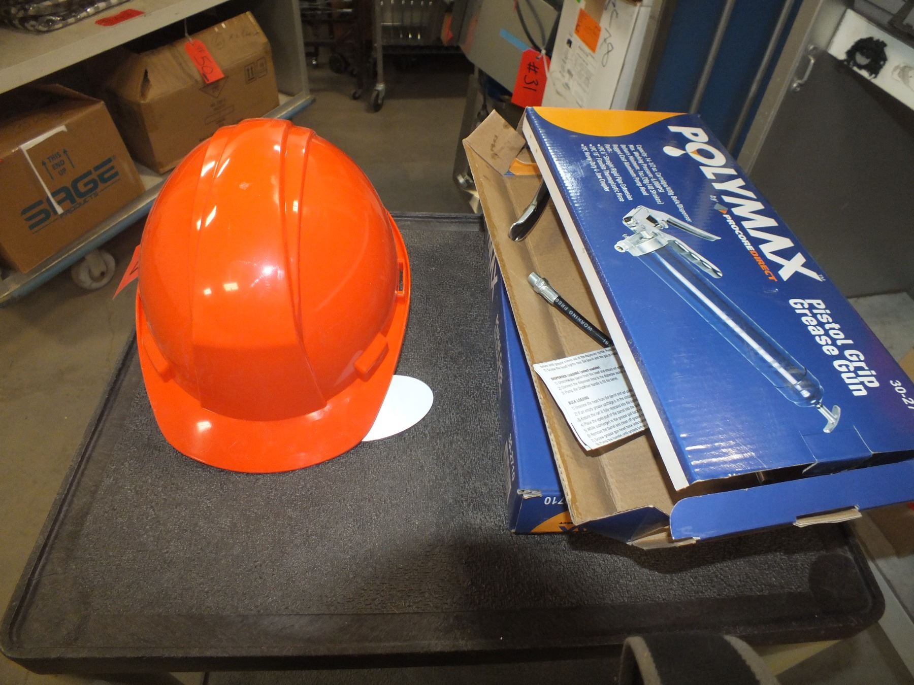 you get 1 hard hat, guts are broken, and 2 pistol grip grease guns...used