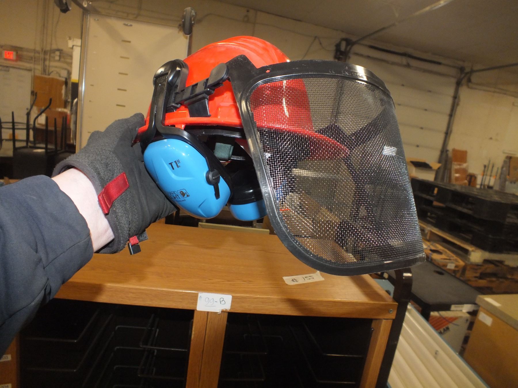 you get 2 wind socks, 4 hard hat sun shades, 2 safety glasses, 1 box of grinding wheels, rain shoe covers, and a hard hat w/ muffs and visor....like new