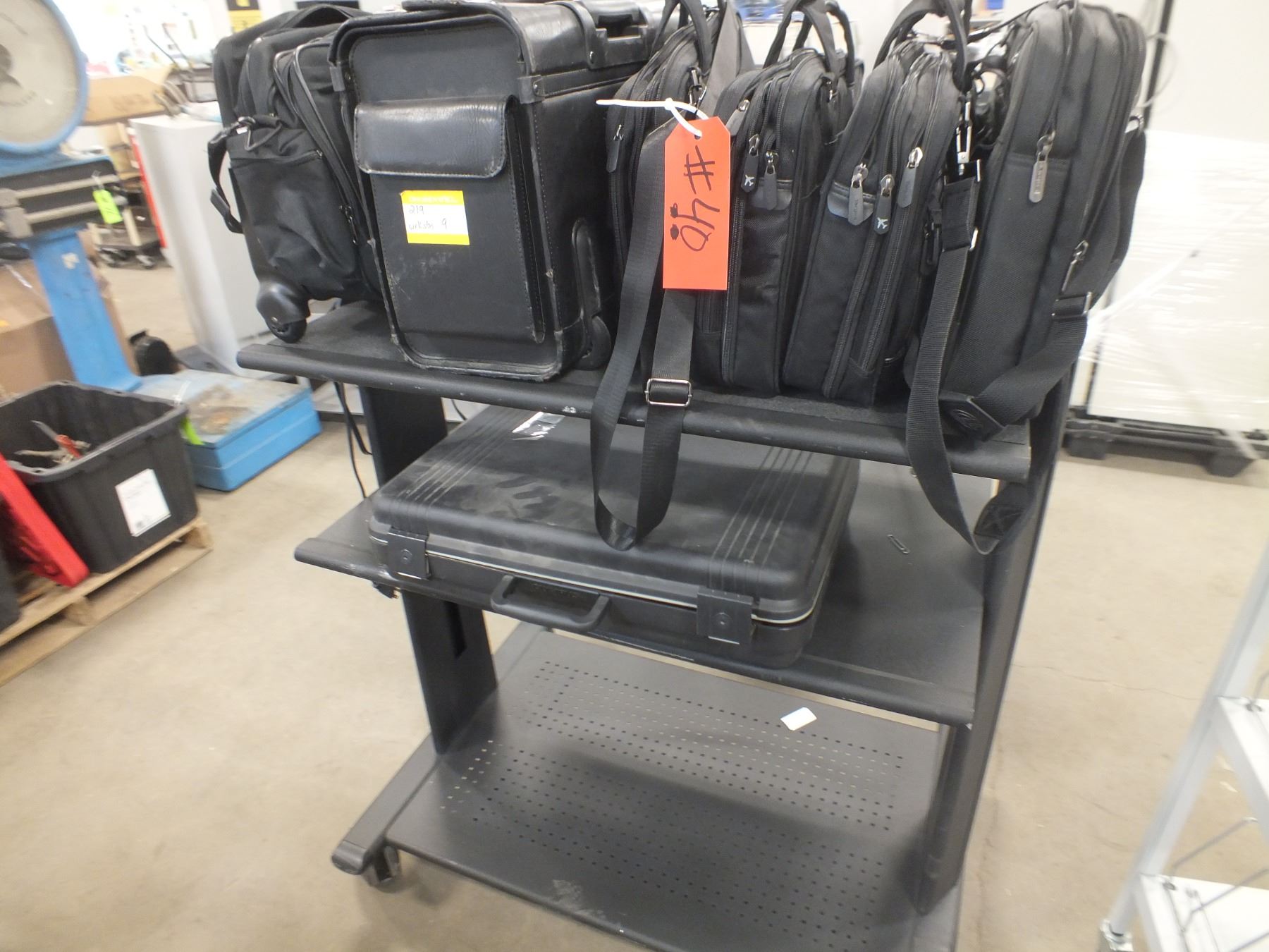 you get it all for one money, 6 laptop bags, 1 storage case, 1 black cart on wheels...used
