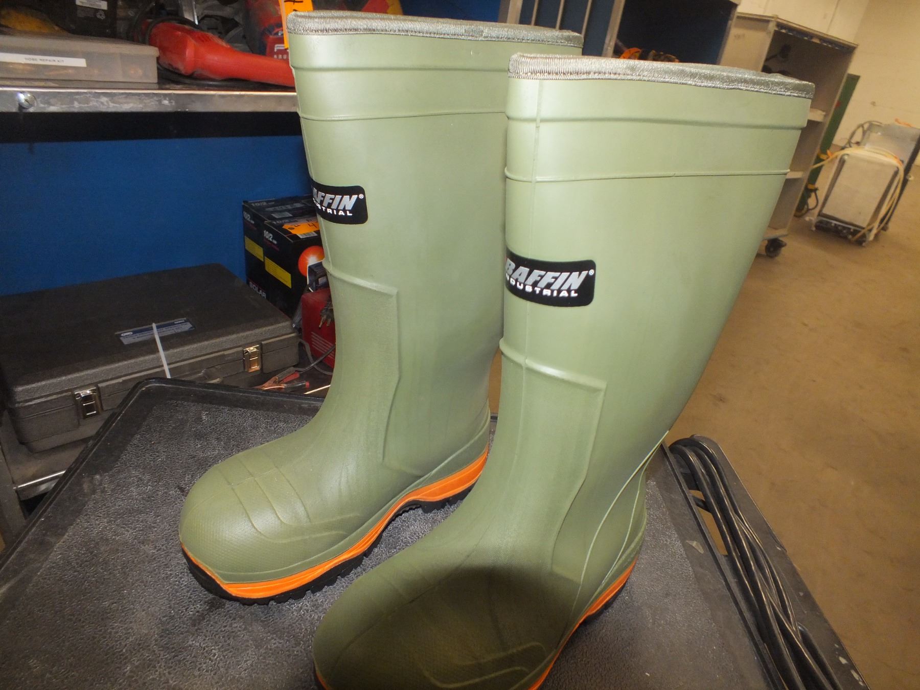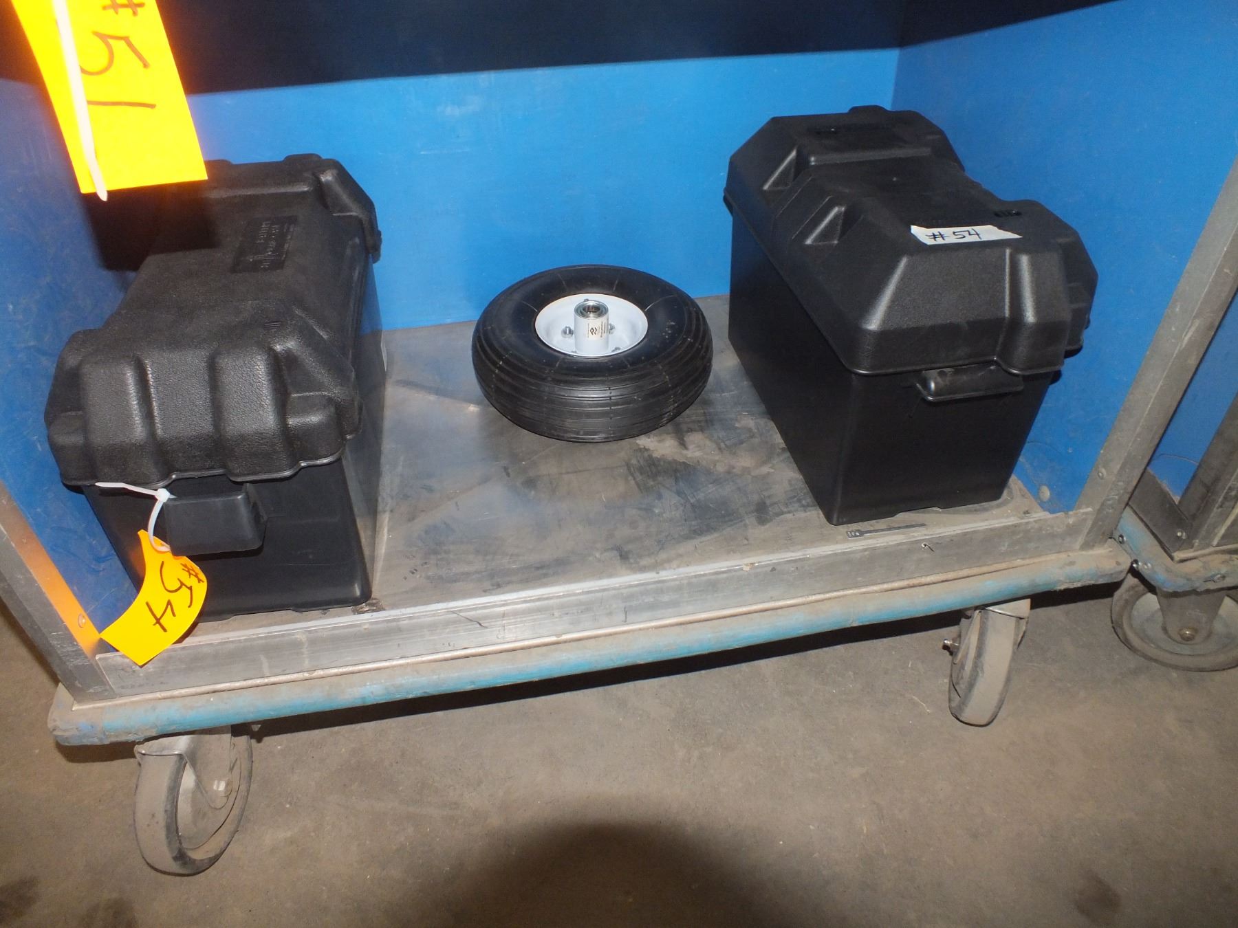 you get 2 plastic battery case's, 1 small tire, and Baffin steel toed rubber boots size 9....used