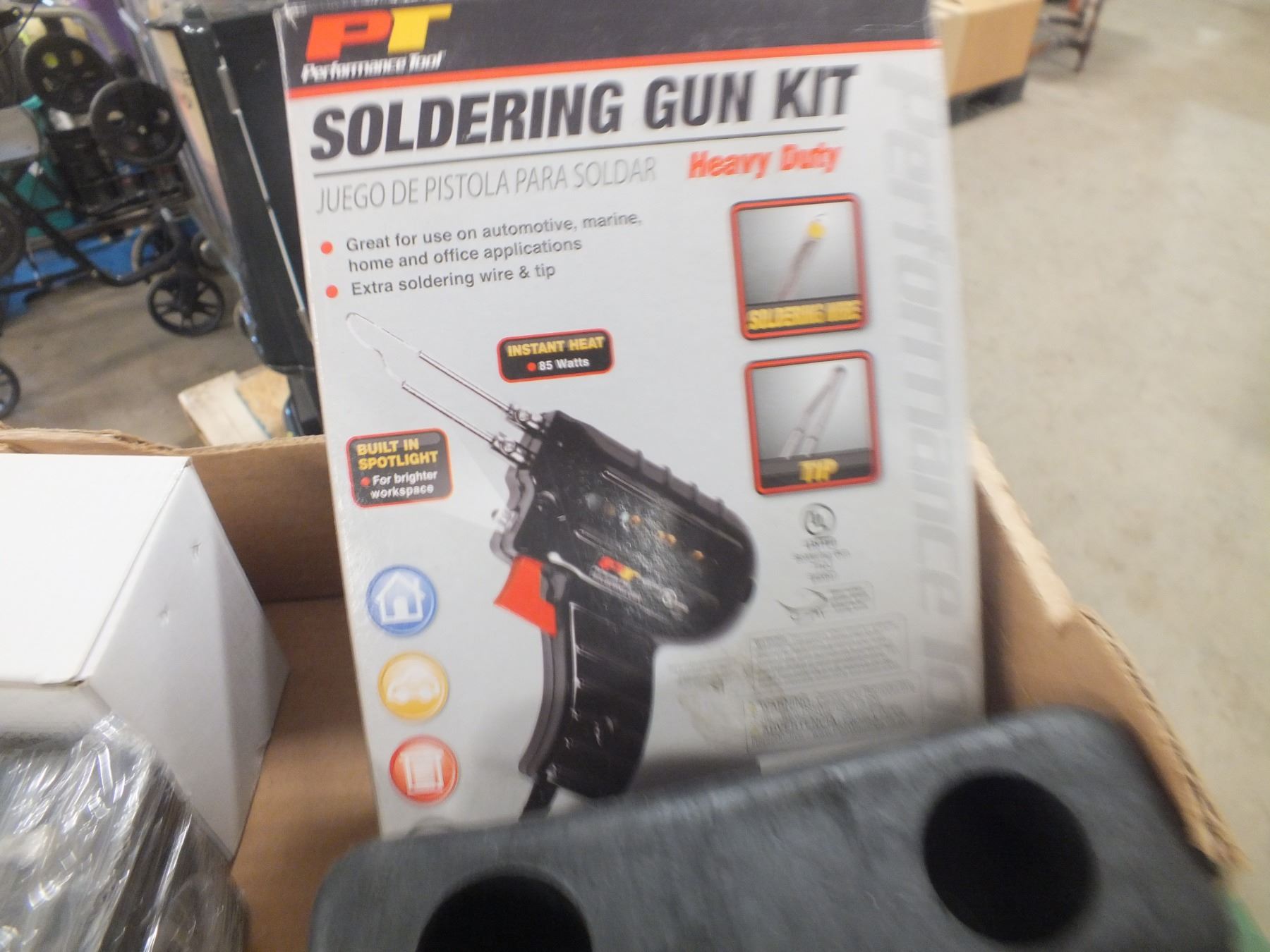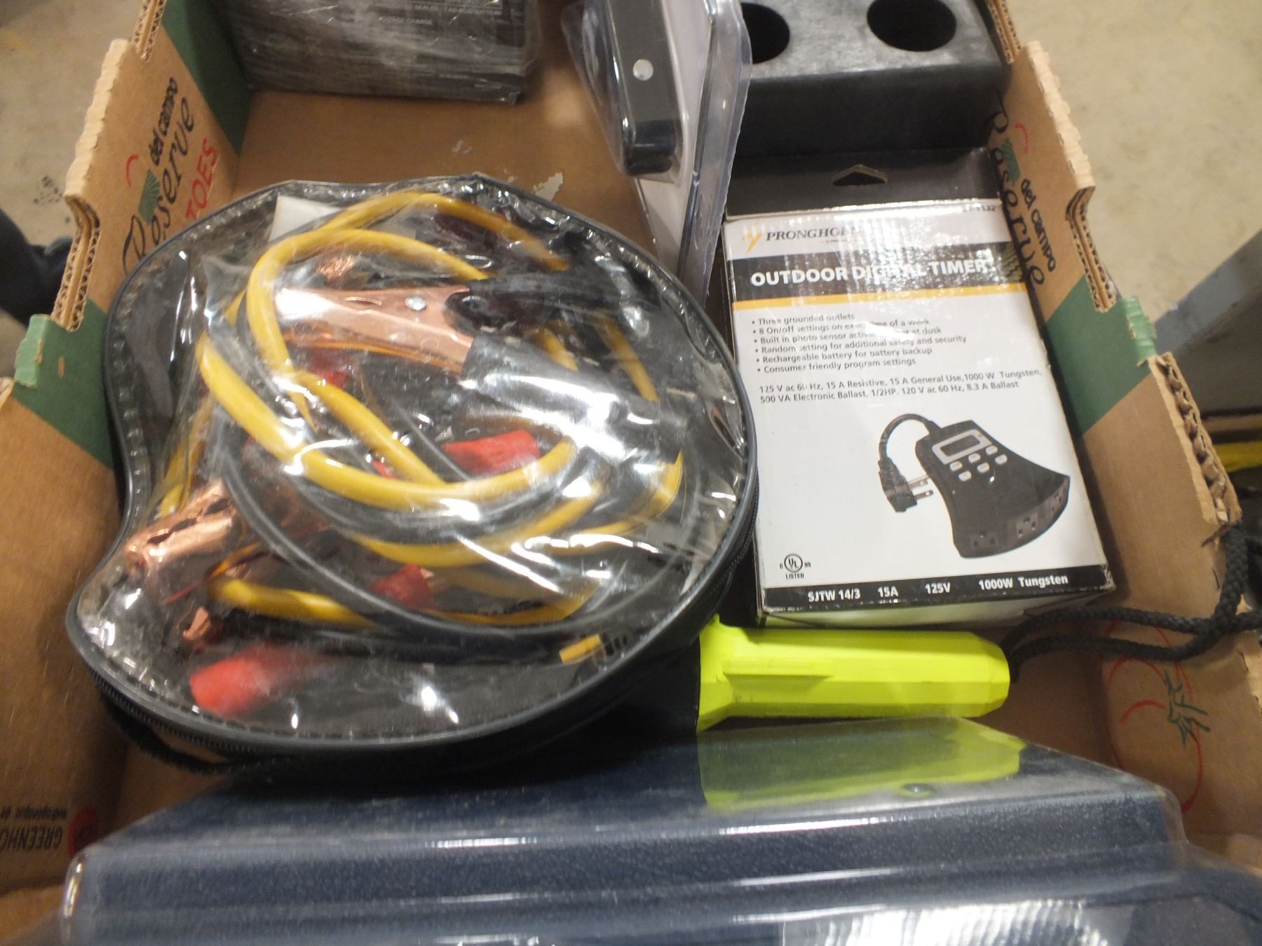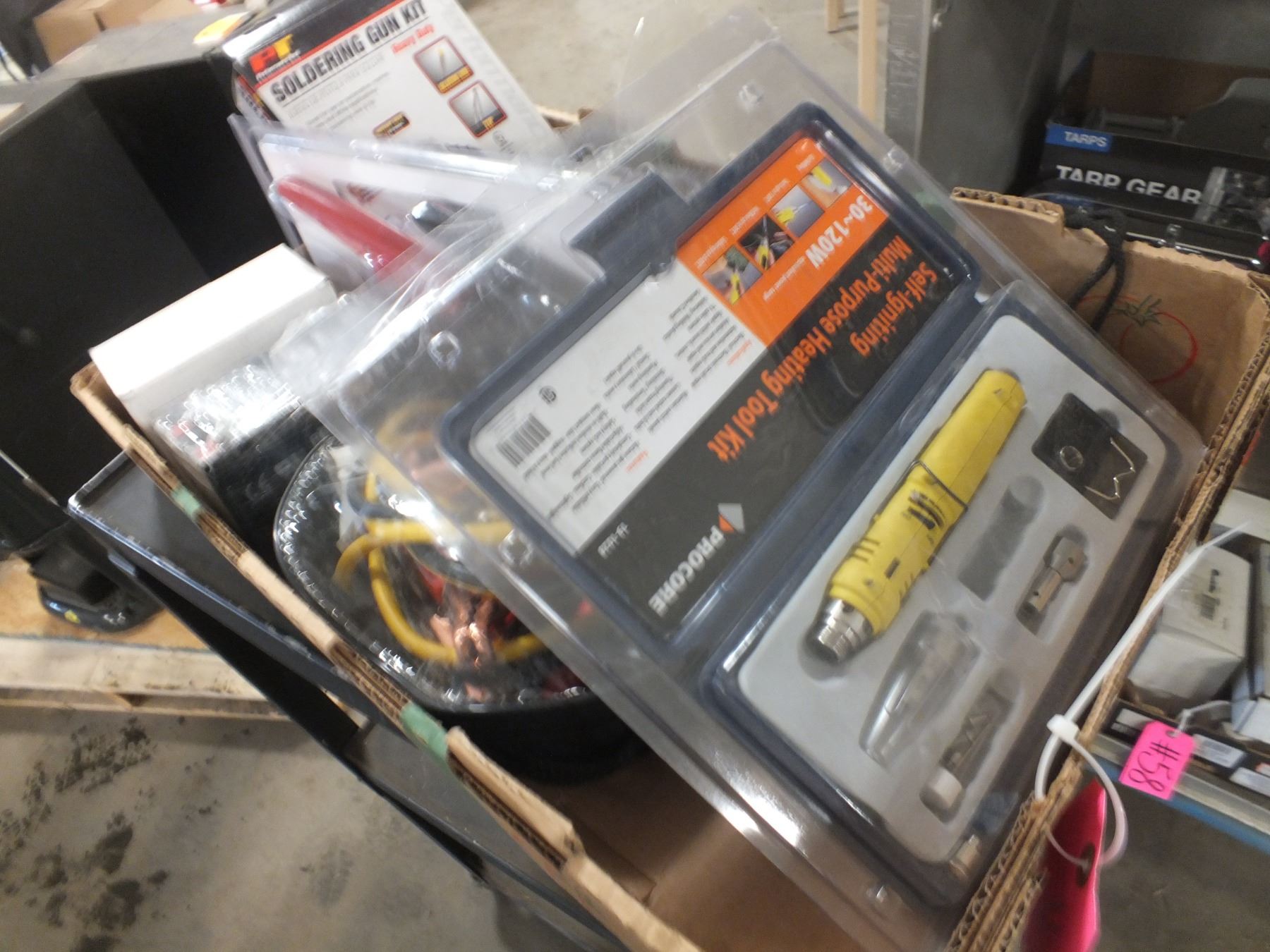 you get everything for one money, multi purpose heating tool, Booster cables & Clamps, 2 small batteries, soldering gun kit, outdoor timer and a flashlight...used