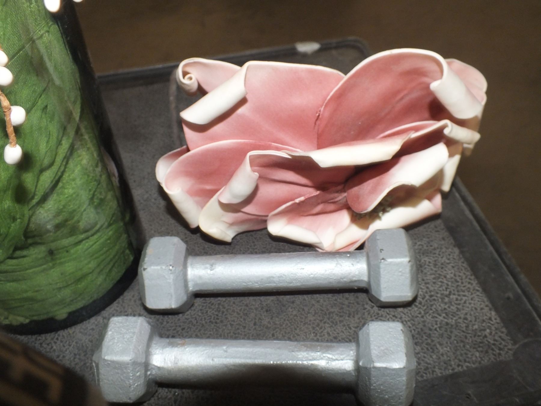 you get a decorative vase, book, 2 3lb weights and a sleeping bag...used
