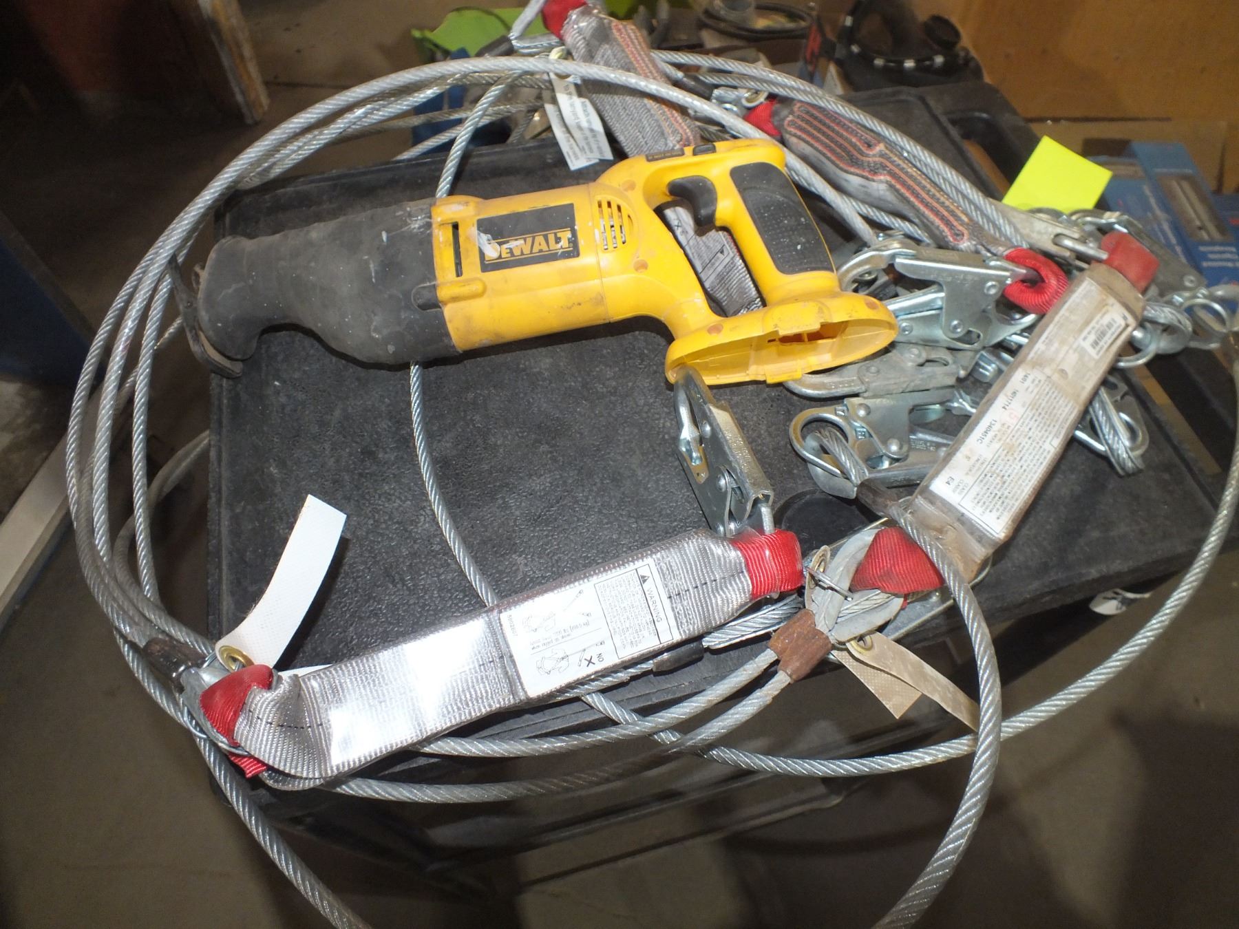 you get 4 Fall arrest Lanyards, and 1 DeWalt 18 volt Sawzall no battery or charger....new/used