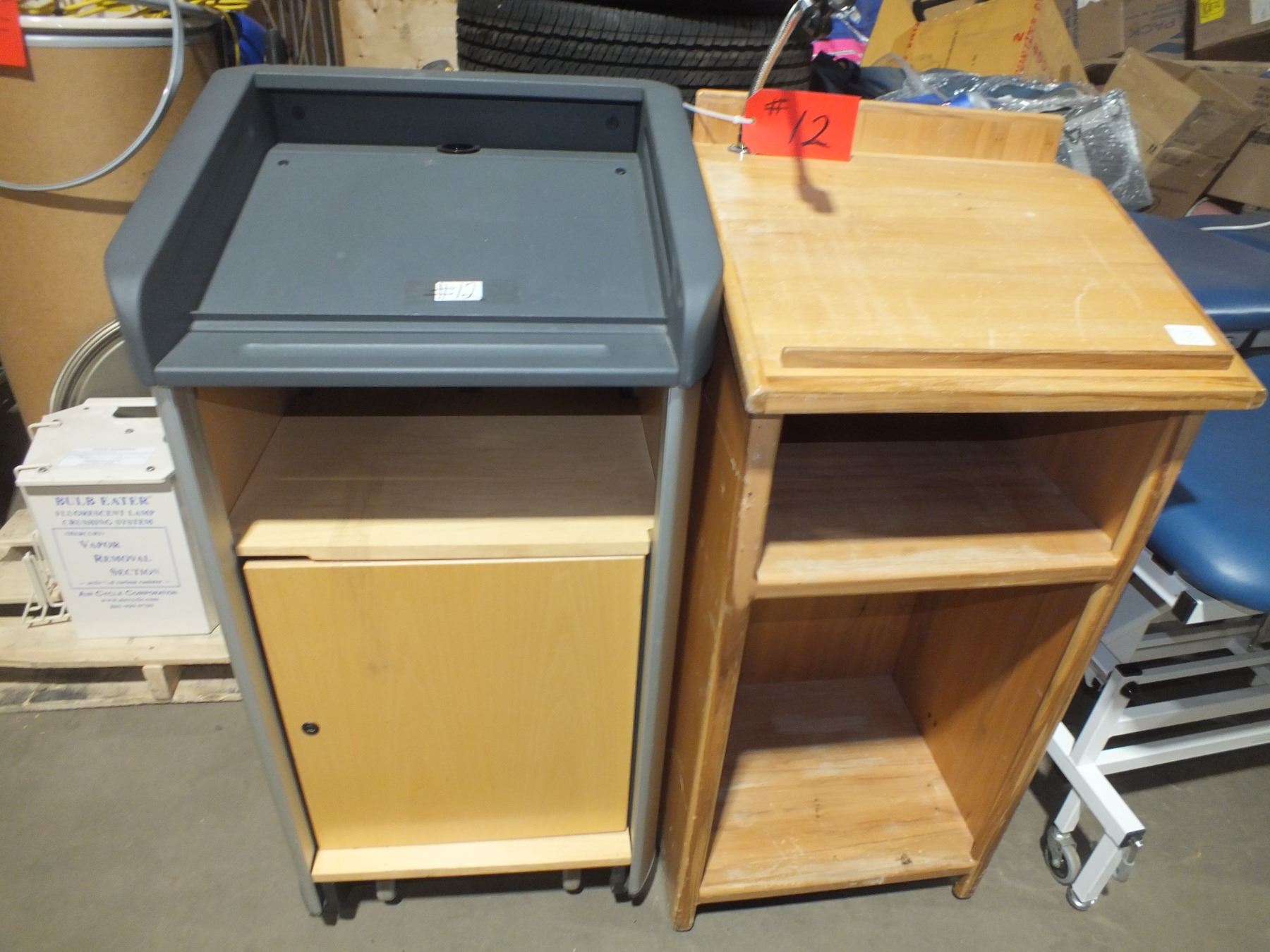 you get it all for one money, 2 wooden podiums, storage cart, display board, 3 wooden stands, bassinet cart...sold as is / where is...used