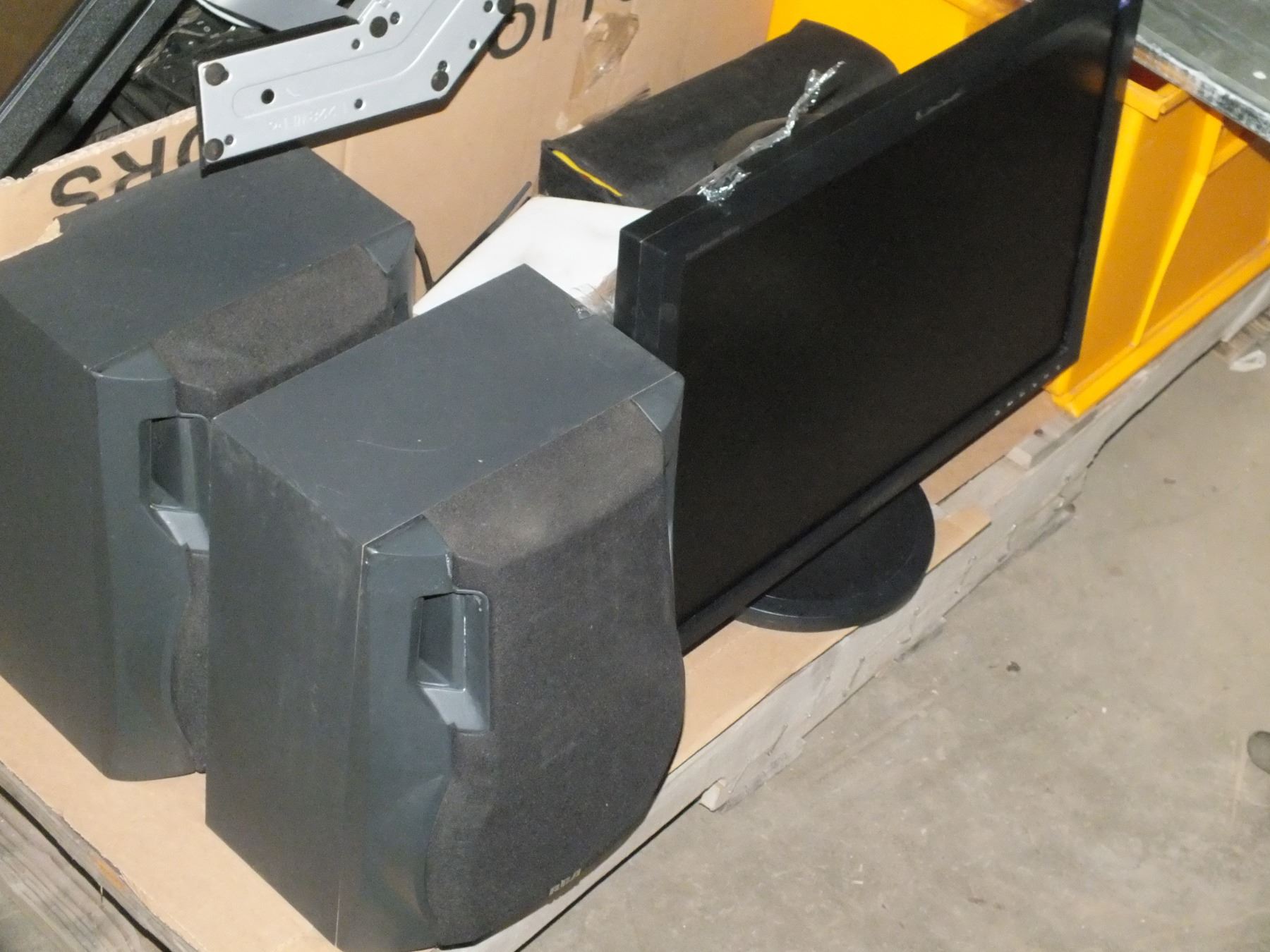 you get it all for one money, 2 plastic storage bins, light bulbs, speakers, computer hardware...used