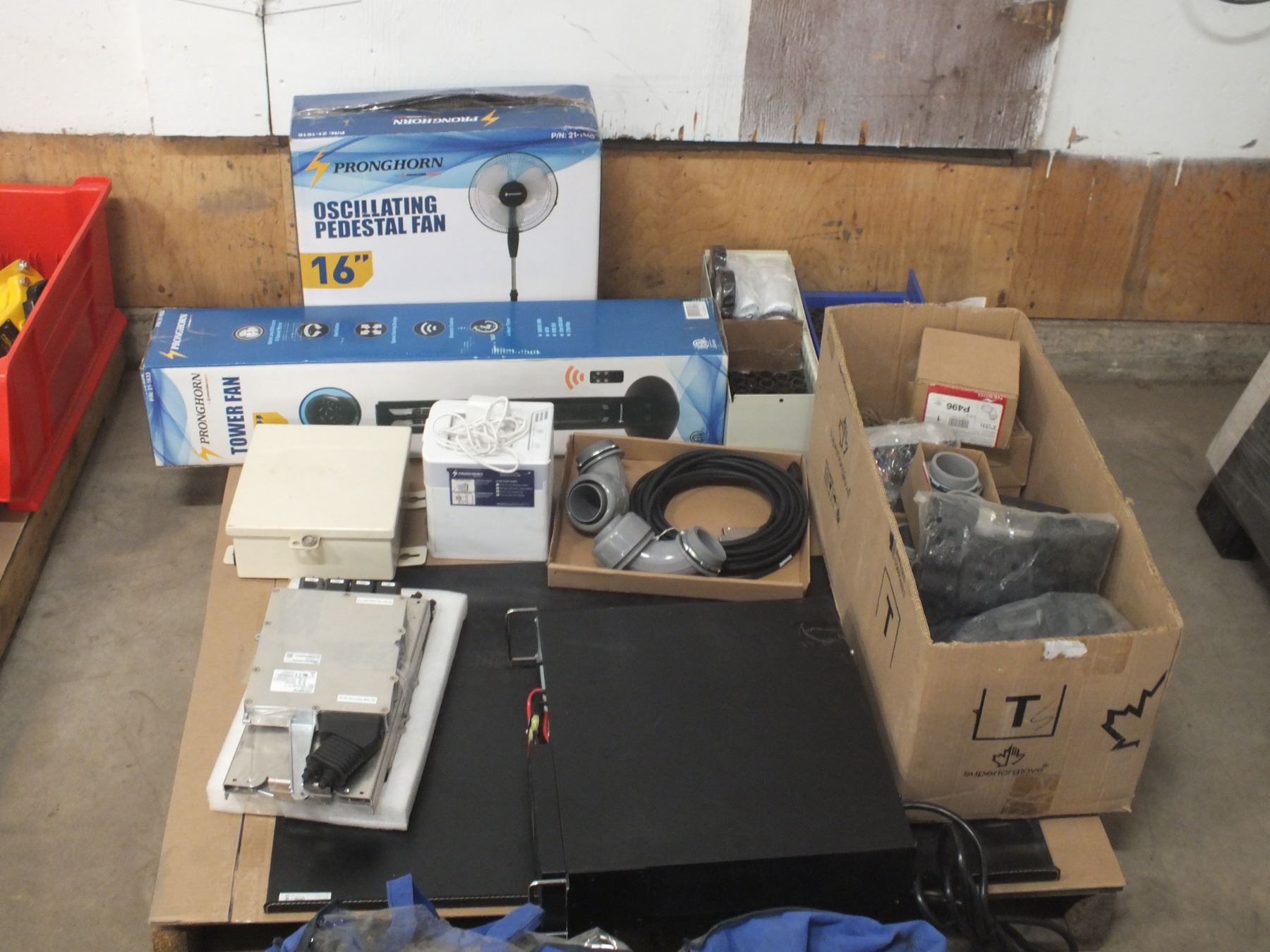 you get it all for one money, fans, plastic clamps, 2 bins of sockets, electric components, pcv elbows, and a desktop chiller, store returns...used