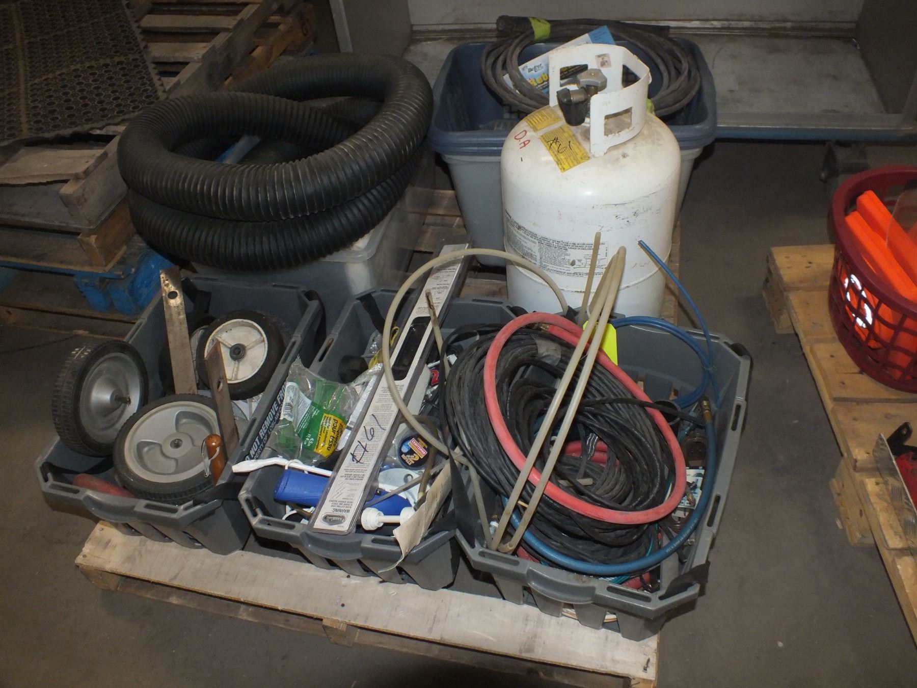 you get small wheels, extension cords, power cord, propane tank, pressure washer hose, rebar chairs, black hose and some miscellaneous...used