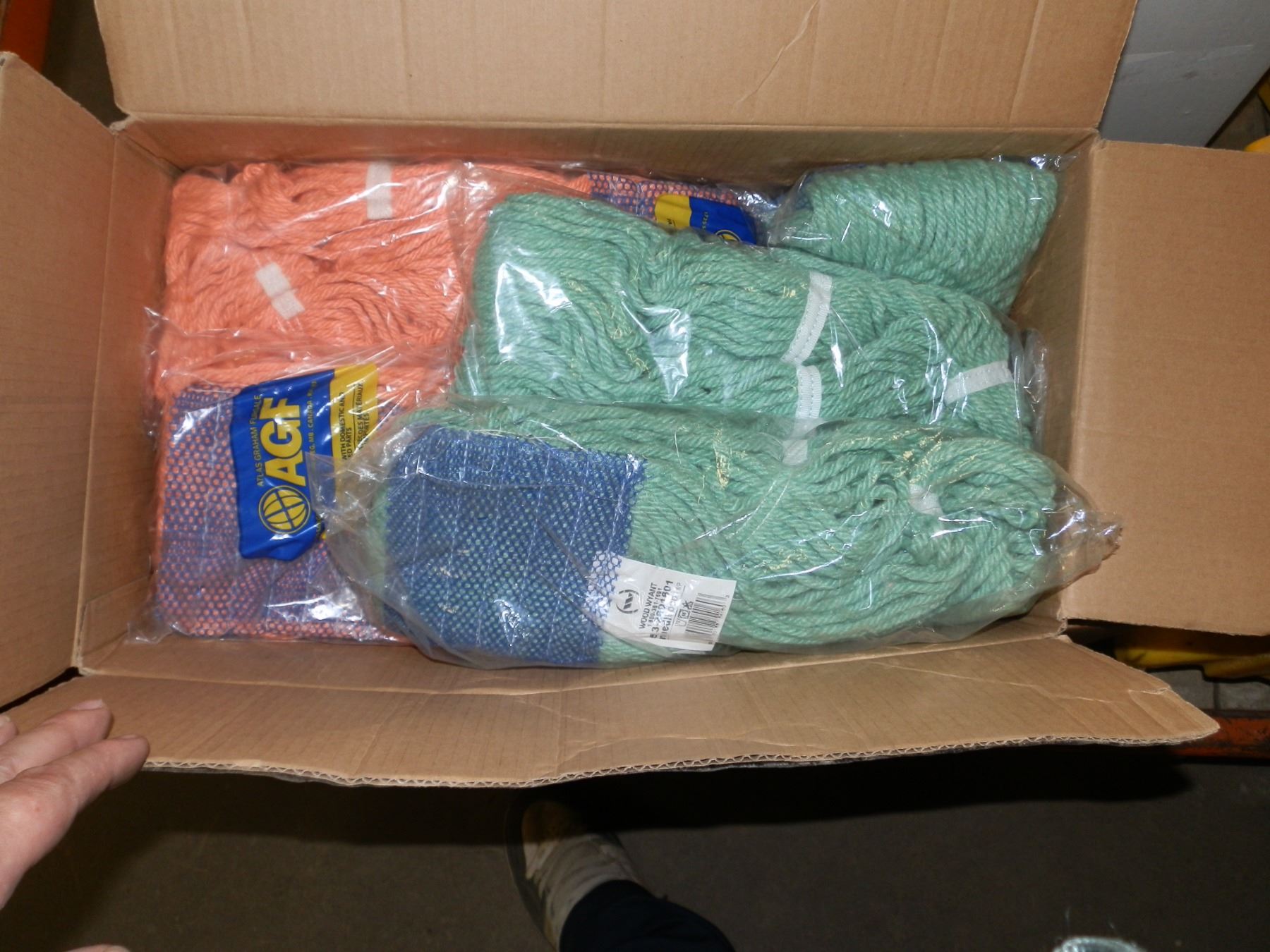 Mop Buckets & Mop Heads, you get 9 mop buckets used, and 3 boxes of mop heads new....