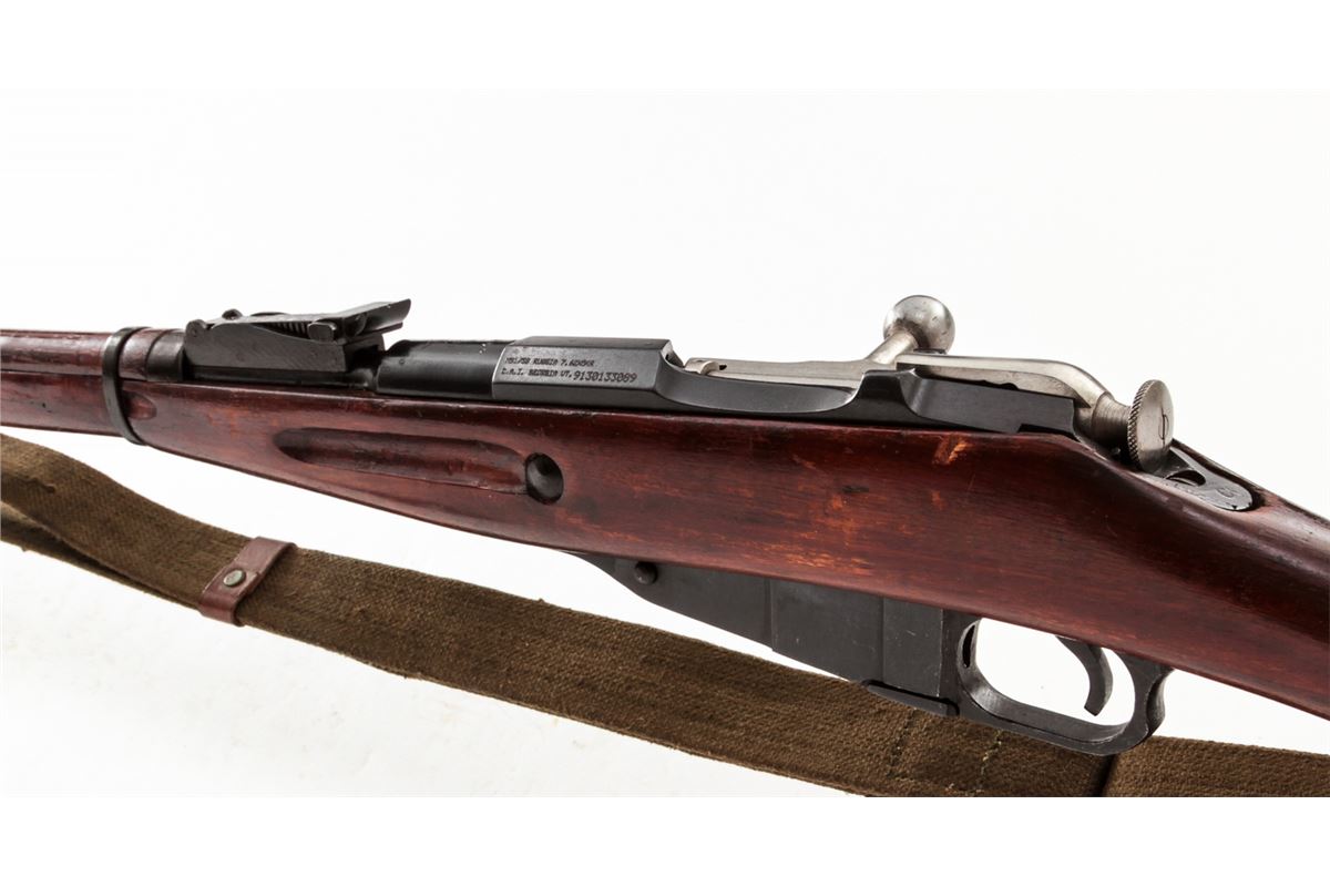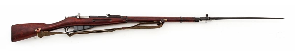 Mosin-Nagant M91/30 Bolt Action Rifle, #9130133089, 7.62x54R cal., 29'' barrel, arsenal blue finish, beech stock, with spike bayonet. Condition is fine as arsenal refinished, retaining approx. 95% blue. Stock shows light handling marks. Good action, very good bore with counter-bored muzzle. Import marked to receiver flat. Est.: $125-$250. (C&R)