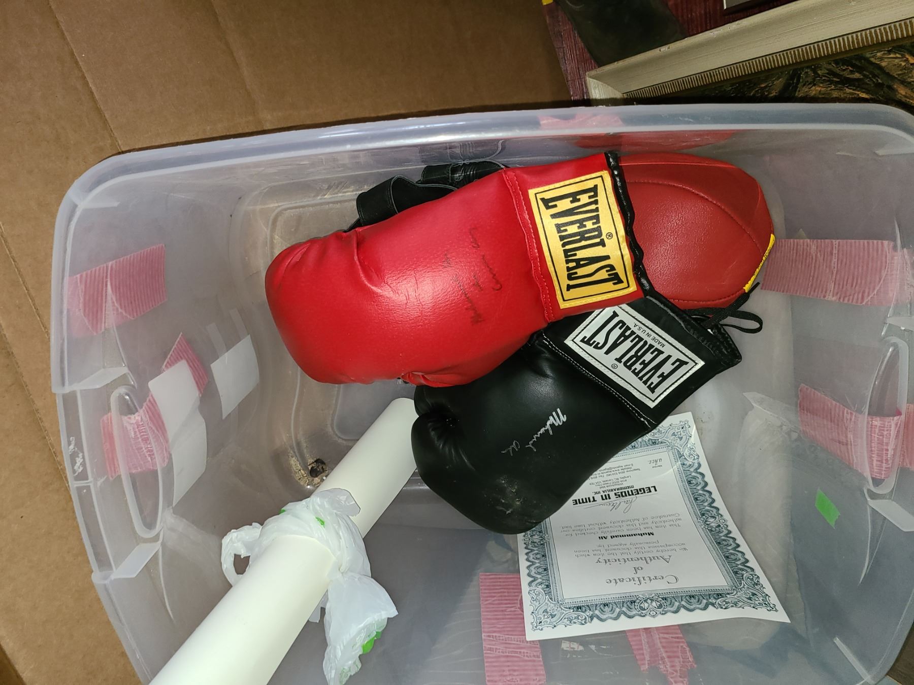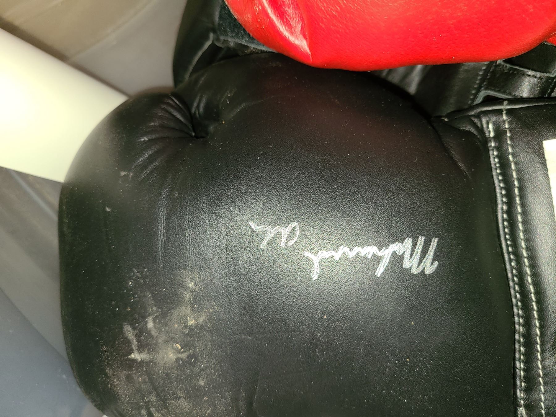 Lot includes signed poster, boxing gloves, head gear, and more. Includes Certificate of Authenticity. Pickup 9 am.