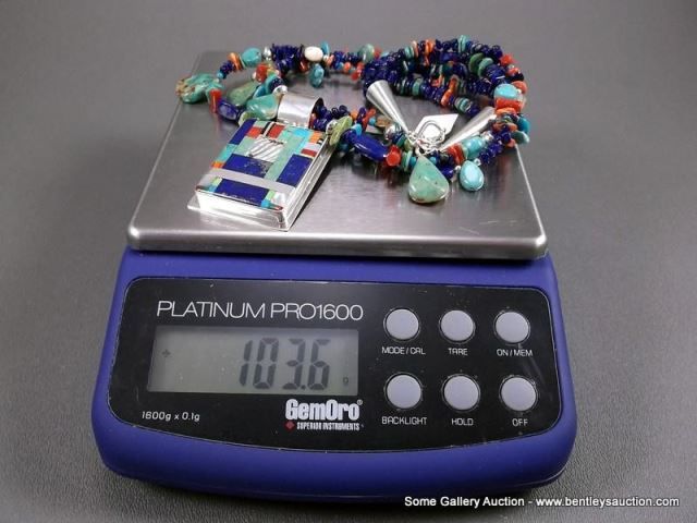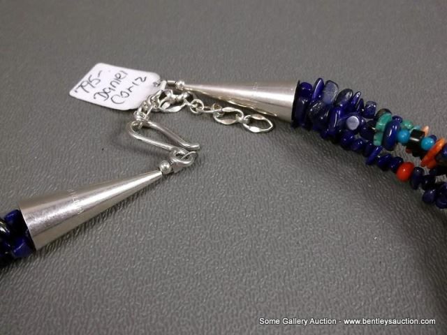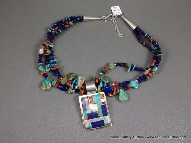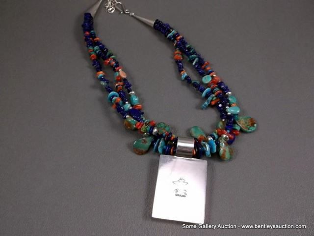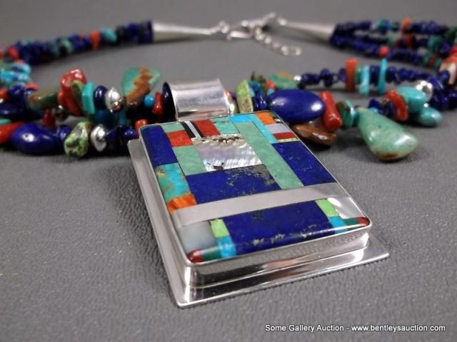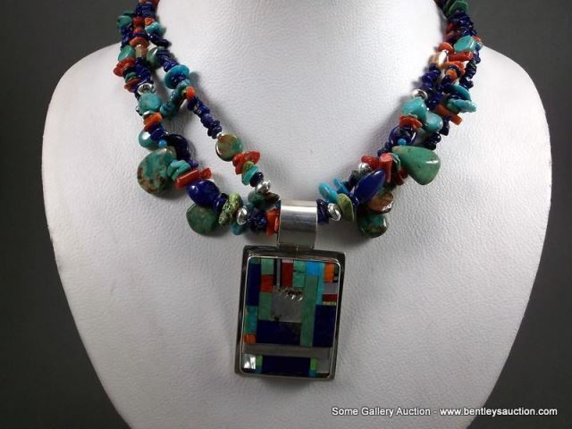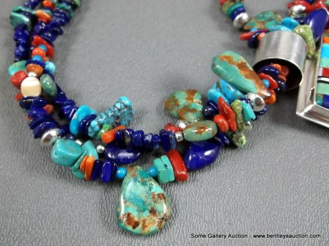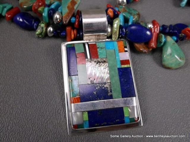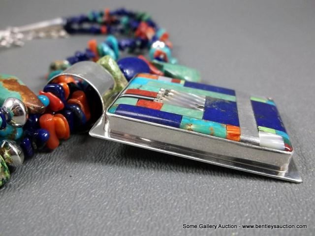 Multi Strand Beaded Necklace W/ Inlaid Stone Pendent, Daniel Coriz Weight: 103.6 Grams Retail: $795.