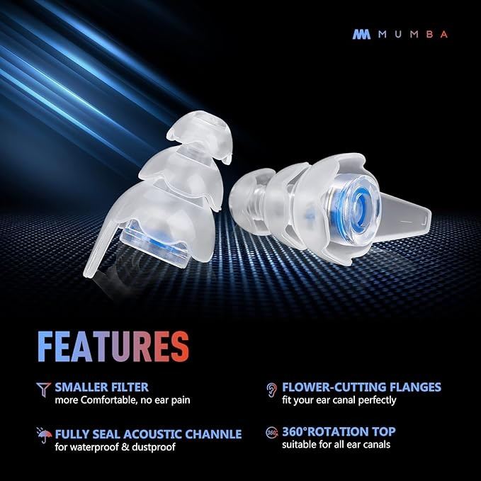 Mumba High Fidelity Concert Earplugs, Reusable Musicians Ear Plugs, 24dB Advanced Filter Technology Ear Protection for Music Festivals DJs Musicians(Black)