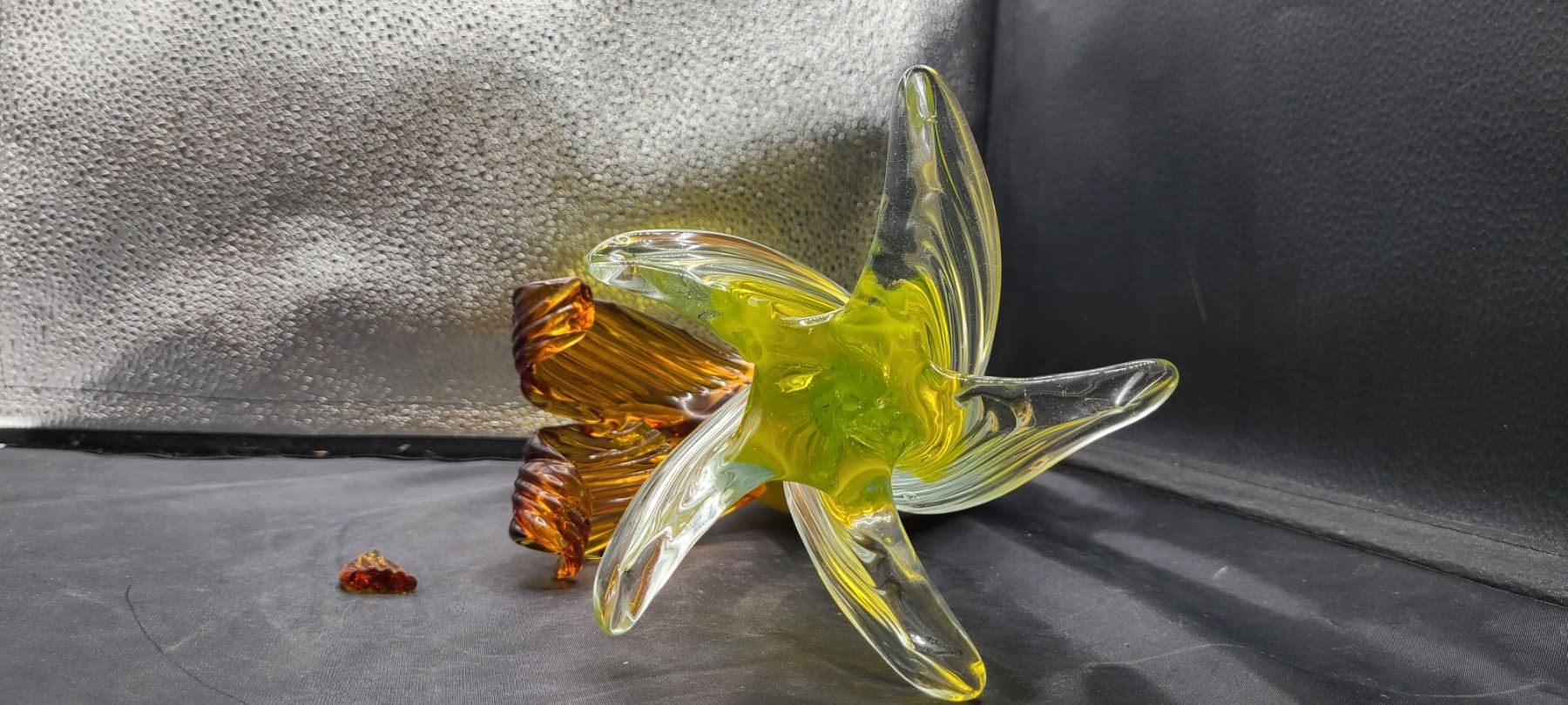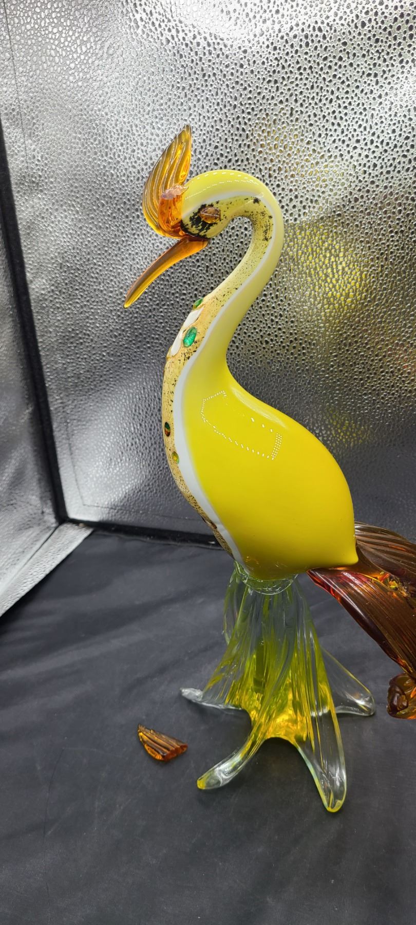 Hand blown glass bird, 15", piece broken off. Pick up 9-10