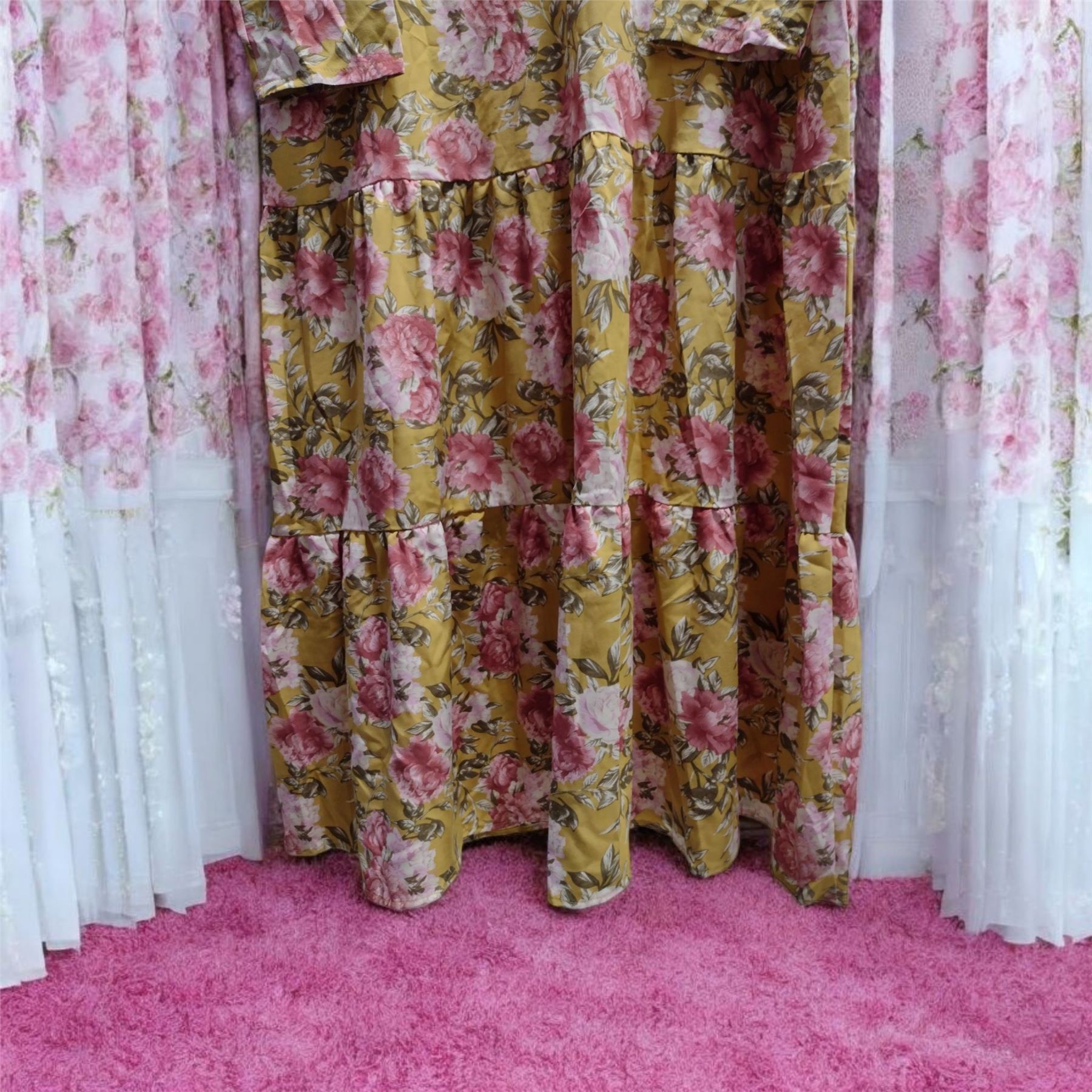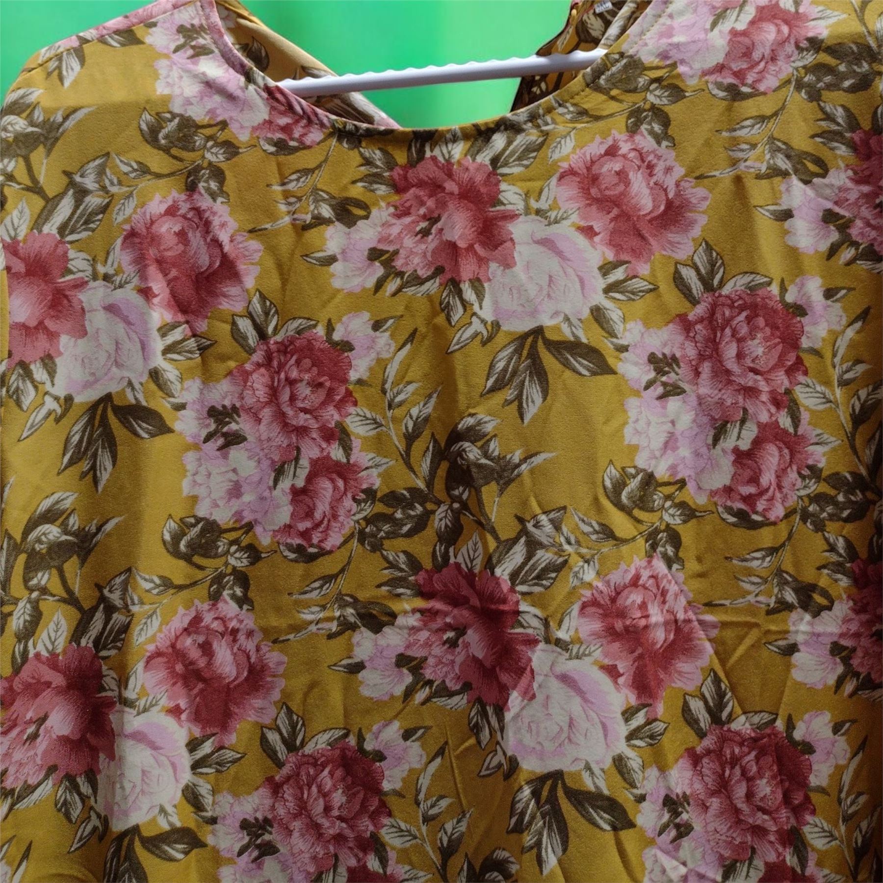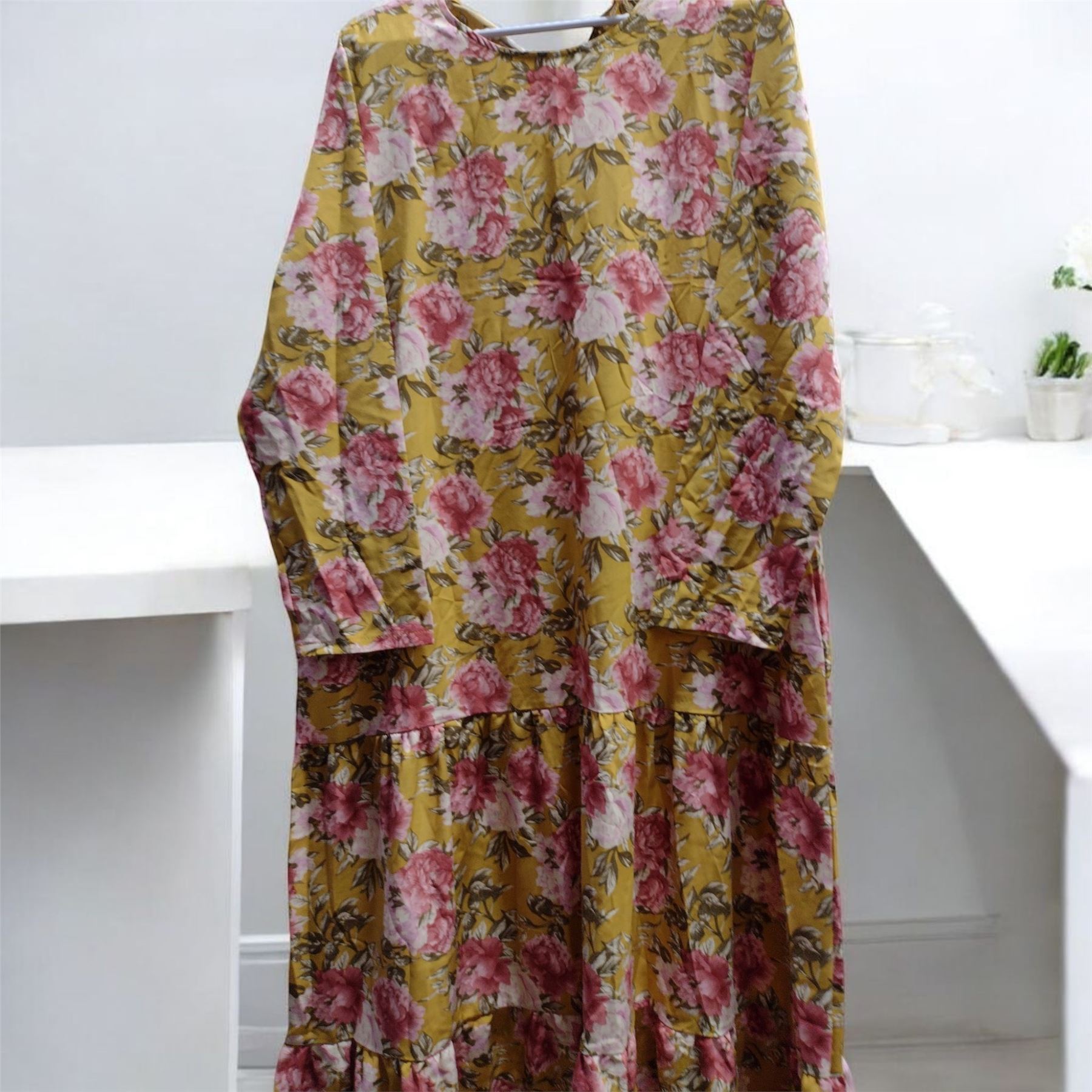 Musturd yellow and pink Floral summer Dress for Women Size XXL