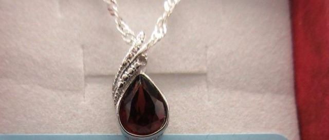 NECKLACE - 1.15CT PEAR FACETED GARNET & DIAMOND IN STERLING SILVER BEZEL SETTING