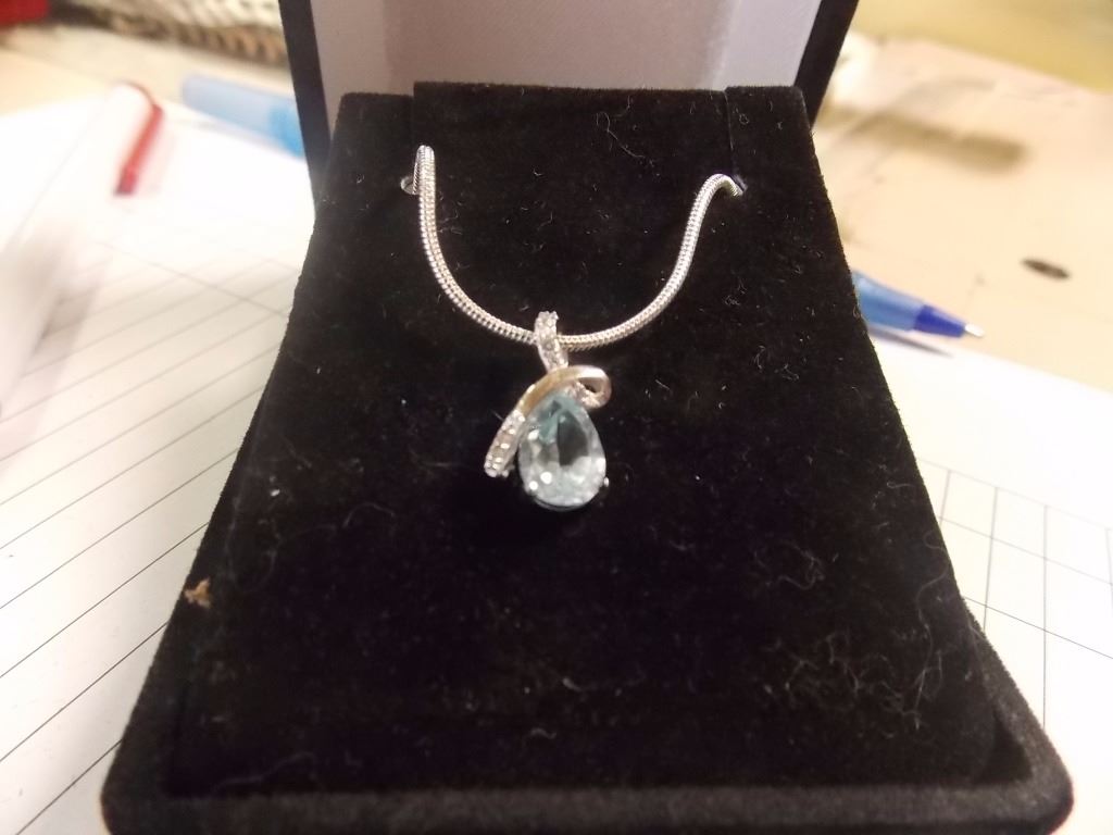 NECKLACE - 1.54CT BLUE TOPAZ & DIAMOND IN STERLING SILVER SETTING - WITH PLATINUM FINISH - INCLUDES CERTIFICATE $325 - W-122