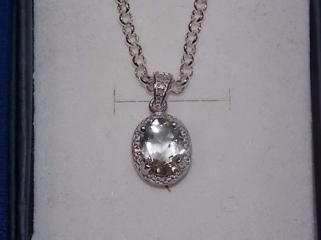 NECKLACE - 1.75CT OVAL FACETED LIVELY GREEN/YELLOW AMETHYST & ROUND FACETED DIAMOND IN STERLING SILVER SETTING - INCLUDES CERTIFICATE $325
