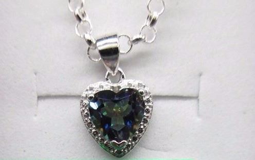 NECKLACE - 1.9CT HEART FACETED MYSTIC TOPAZ & ROUND FACETED DIAMOND IN STERLING SILVER SETTING - INCLUDES CERTIFICATE $275