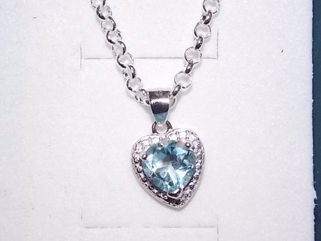 NECKLACE - 1CT HEART FACETED BLUE TOPAZ & DIAMOND IN STERLING SILVER SETTING - INCLUDES CERTIFICATE $285