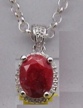 NECKLACE - 2.2 TCW OVAL FACETED RUBY & DIAMOND IN STERLING SILVER SETTING - INCLUDES CERTIFICATE $345