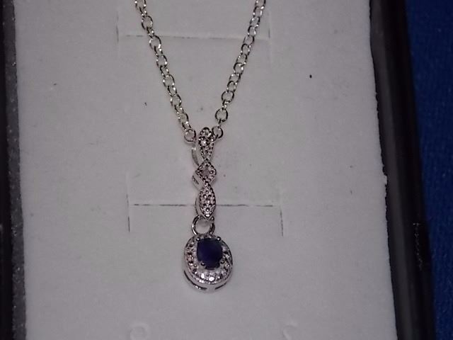NECKLACE - BLUE SAPPHIRE & DIAMOND IN STERLING SILVER SETTING - RETAIL ESTIMATE $325
