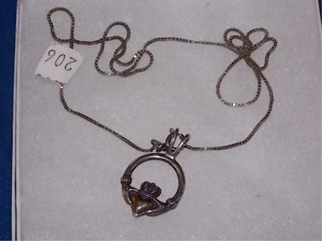 NECKLACE -IRISH CLADDAGH STERLING SILVER NECKLACE WITH 14KT ACCENTS - INCLUDES 17' STERLING SILVER CHAIN