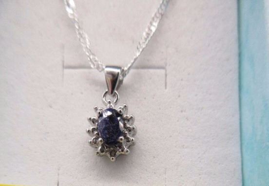 NECKLACE - OVAL FACETED BLUE SAPPHIRE & DIAMOND IN STERLING SILVER SETTING - RETAIL ESTIMATE $350