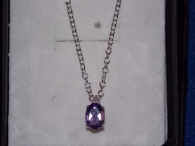 NECKLACE - OVAL FACETED PURPLE AMETHYST IN STERLING SILVER SETTING - RETAIL ESTIMATE $275