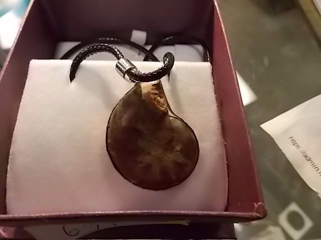 NECKLACE PENDANT - NEW POLISHED AMMONITE PENDANT IN STERLING SILVER SETTING