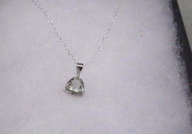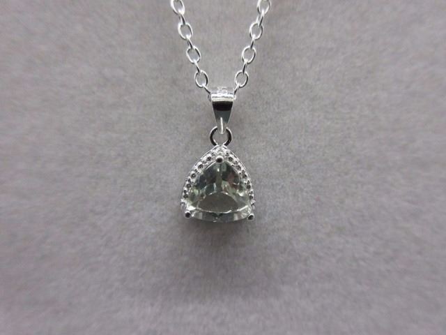 NECKLACE - TRILLUON FACETED GREEN AMETHYST & DIAMOND IN STERLING SILVER PENDANT WITH STERLING SILVER CHAIN - RETAIL ESTIMATE $300