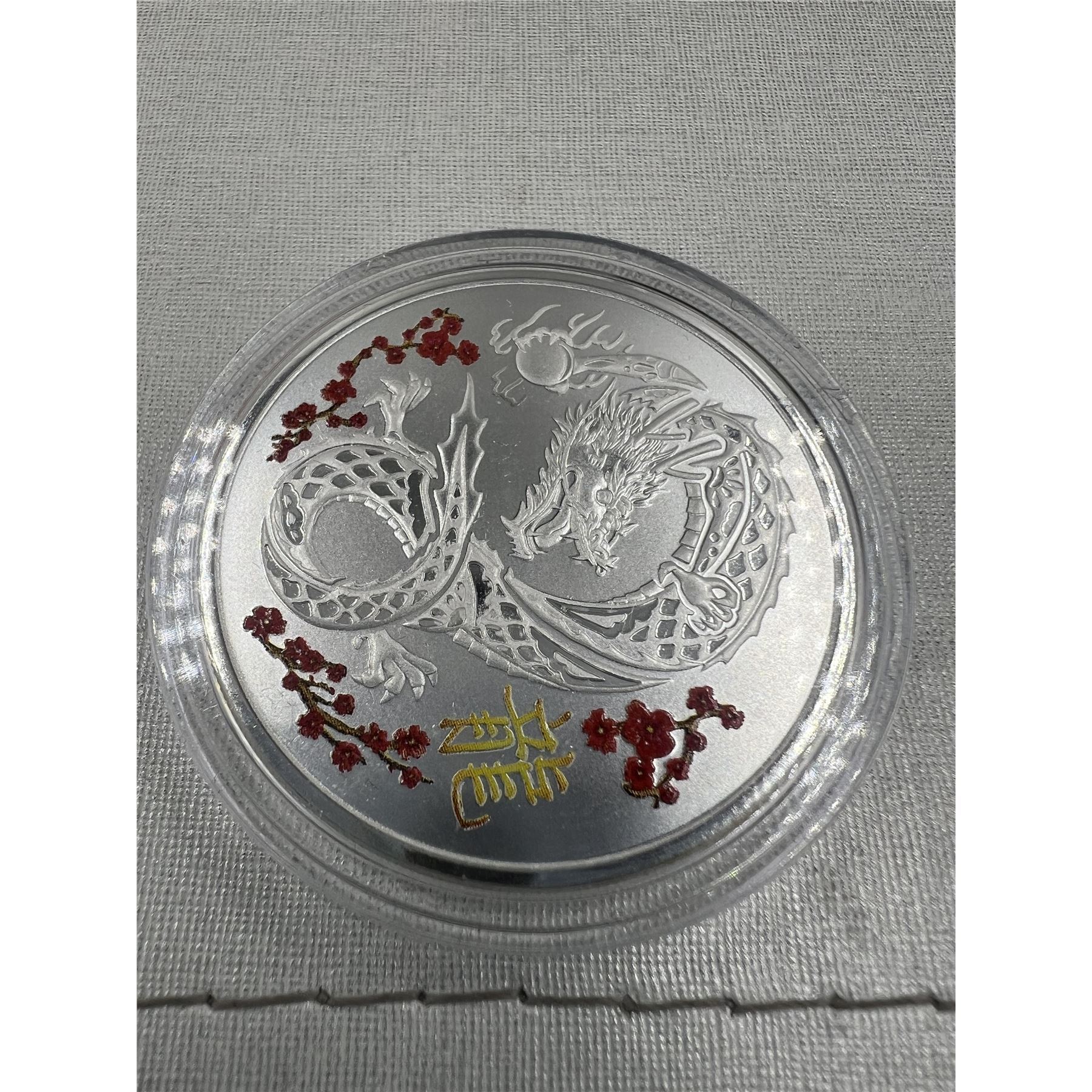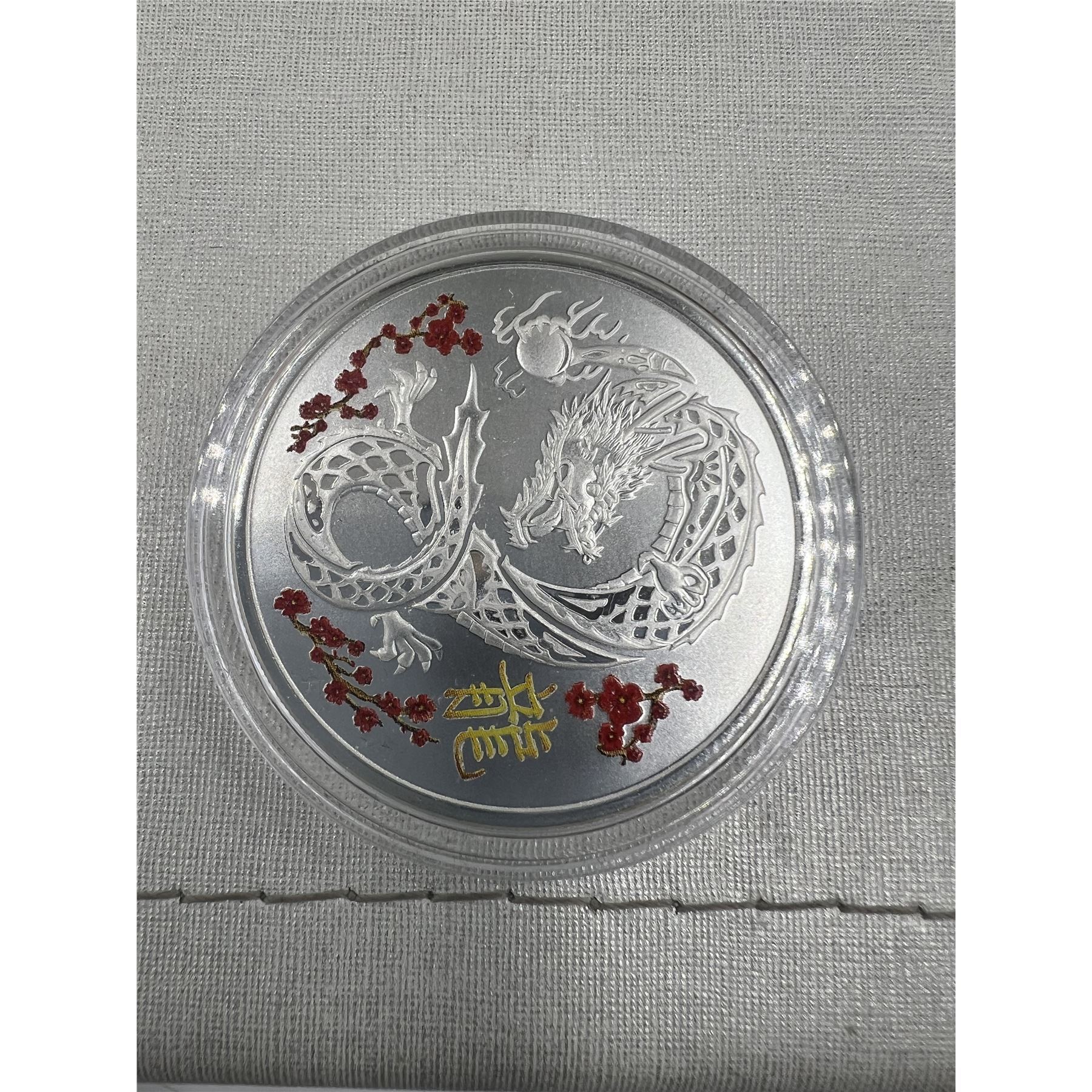 NEW 1 oz RED COLOURED DRAGON LUNA YEAR FINE SILVER .9999 COIN UNC