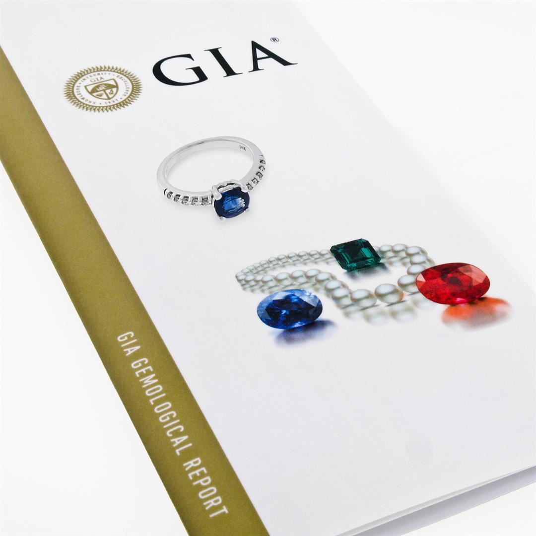 A new solid 14k white gold solitaire engagement ring, with 1 Gia certified oval cut naural sapphire (6.46 x 5.70 x 3.51 mm- 1.15ct), and 10 round brilliant cut natural diamonds (G/H - VS1/VS2; 0.15ctw). The ring is size 5.0, weighs a total of 2.46 grams, and measures 6.15mm wide. Comes with all original relevant certifications.