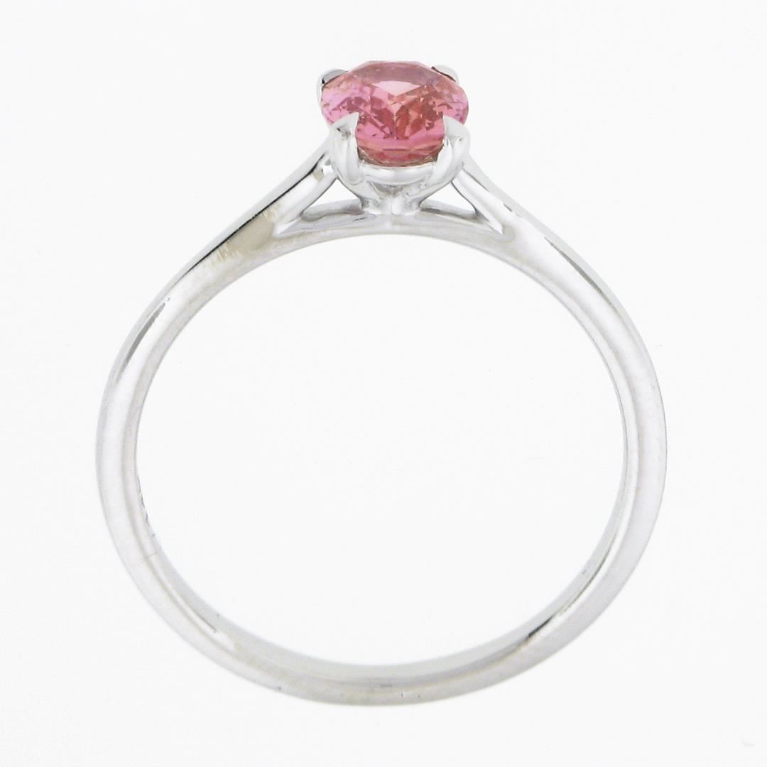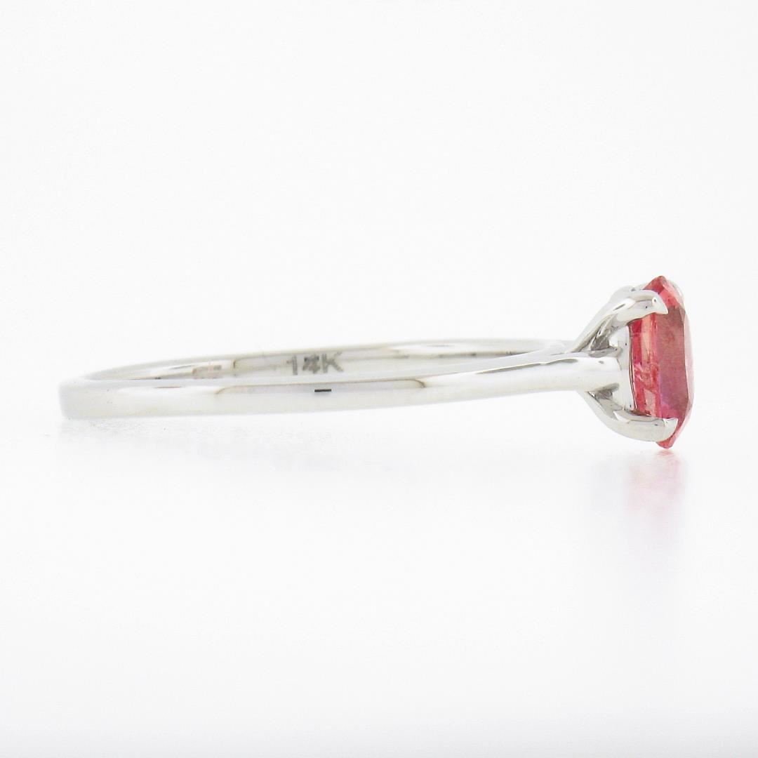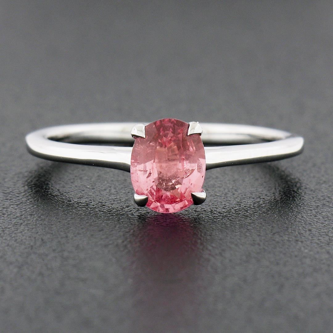 A new solid 14k white gold ring, with 1 GIA graded oval cut natural sapphire (0.80ct). The ring is size 6.5, weighs a total of 1.80 grams, and measures 6.4mm wide. Comes with all original relevant certifications.