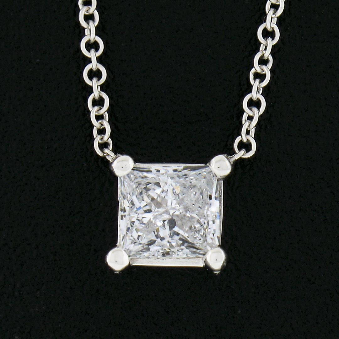 A new solid 14k white gold pendant necklace, with 1 princess cut natural diamond (G - I1 ; 0.48ct). Adjustabel 16 & 18 inch cable link chain, 2.06 grams total weight, pendant measures 5.8x6mm.