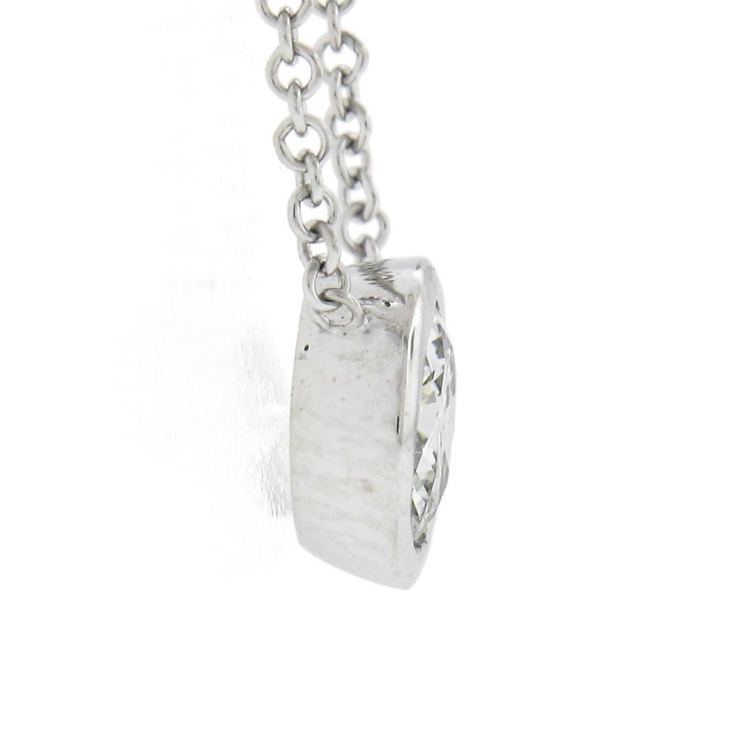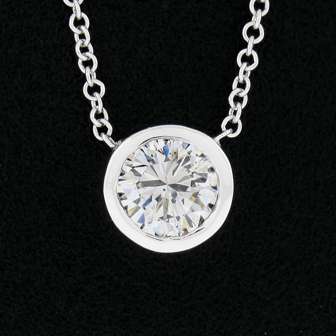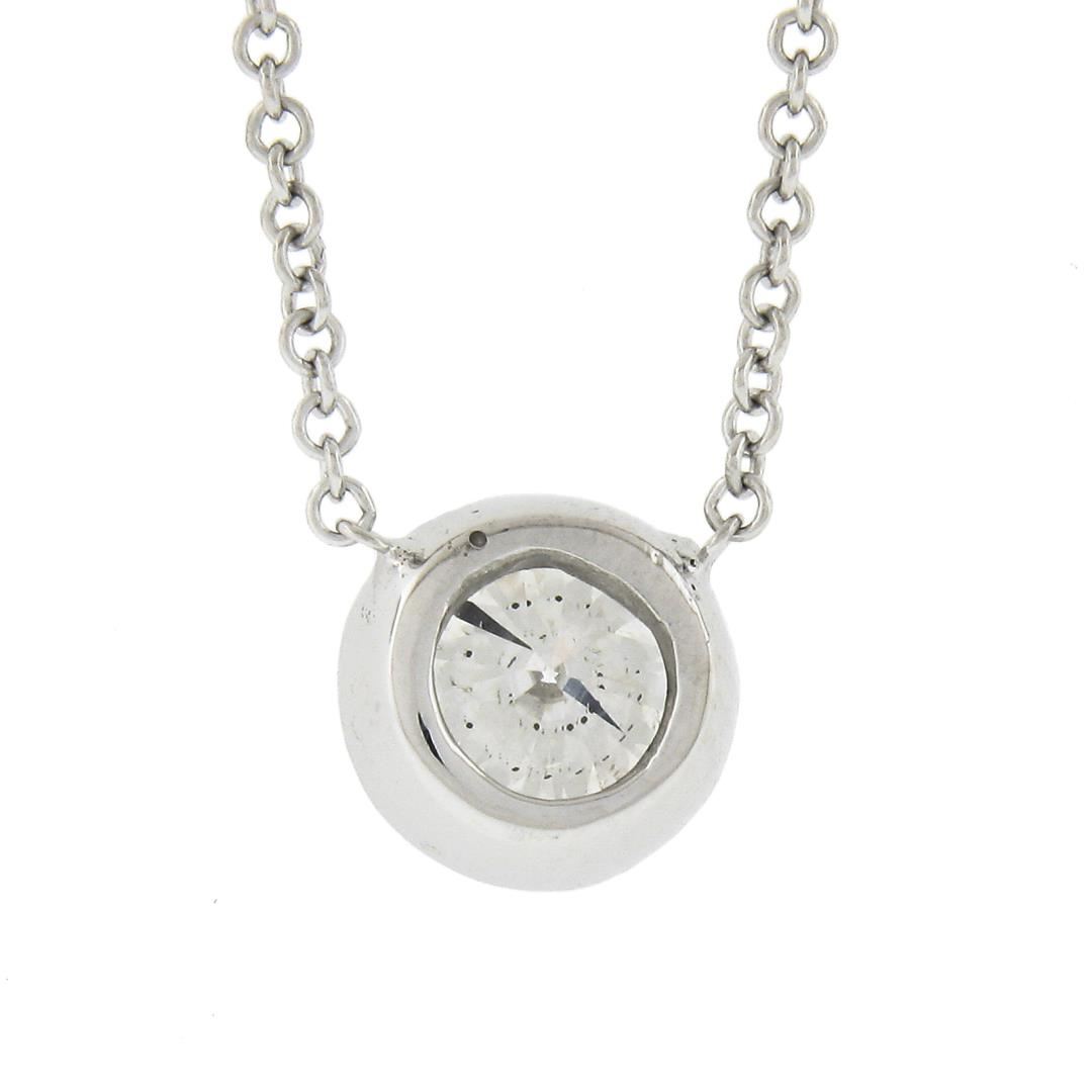 A new solid 14k white gold solitaire pendant necklace, with 1 round brilliant cut natural diamond (H - SI1 ; 0.55ct). Adjustabel 16 or 18 inch cable link chain, 2.18 grams total weight, pendant diameter measures 6.6mm.
