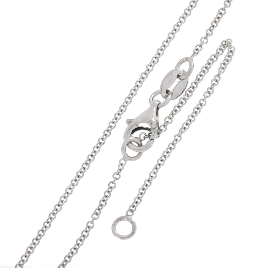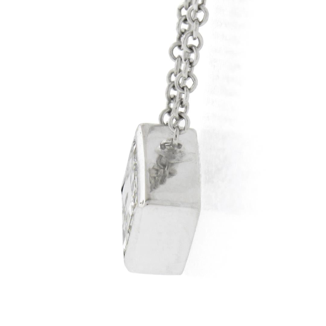 A new solid 14k white gold pendant necklace, with 1 princess cut natural diamond (H - I1 ; 0.59ct). Adjustabel 16 & 18 inch cable link chain, 2.13 grams total weight, pendant measures 7.65x7.65mm.