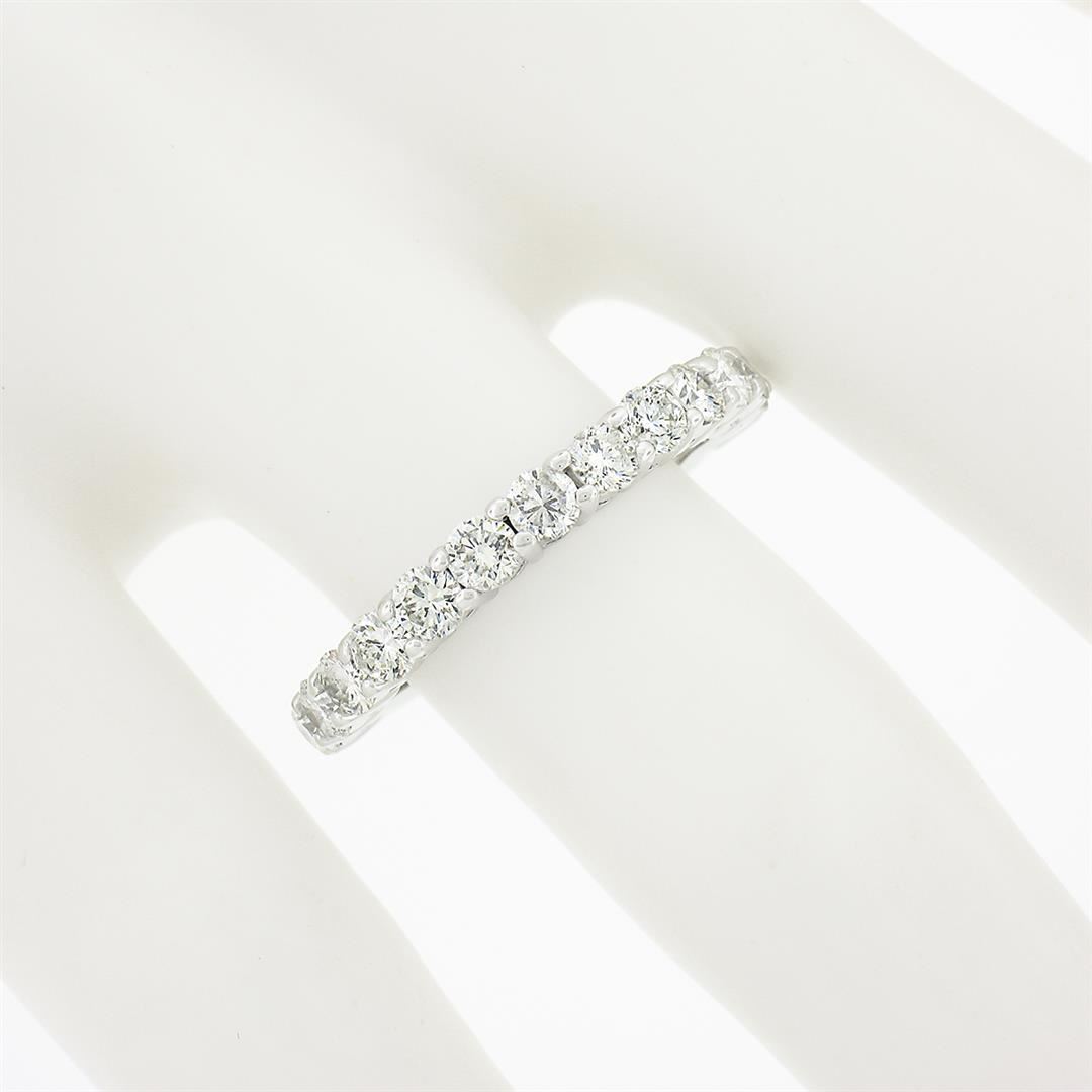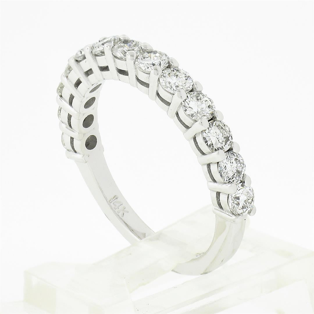 A new solid 14k white gold band ring, with 13 round brilliant cut natural diamonds (G/H - SI1/SI2 ; 1.14ctw). The ring is size 6.5, weighs a total of 3.14 grams, and measures 2.95mm wide.