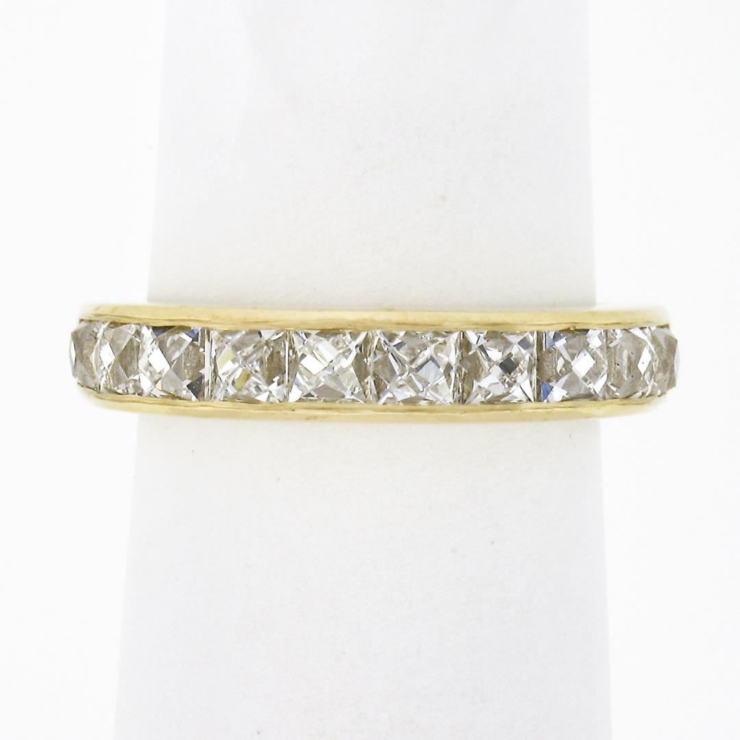 A new solid 18k yellow gold band ring, with 10 French cut natural diamonds (H/I - VVS2/VS1 ; 1.75ctw). The ring is size 5.0, weighs a total of 4.12 grams, and measures 3.60mm wide.