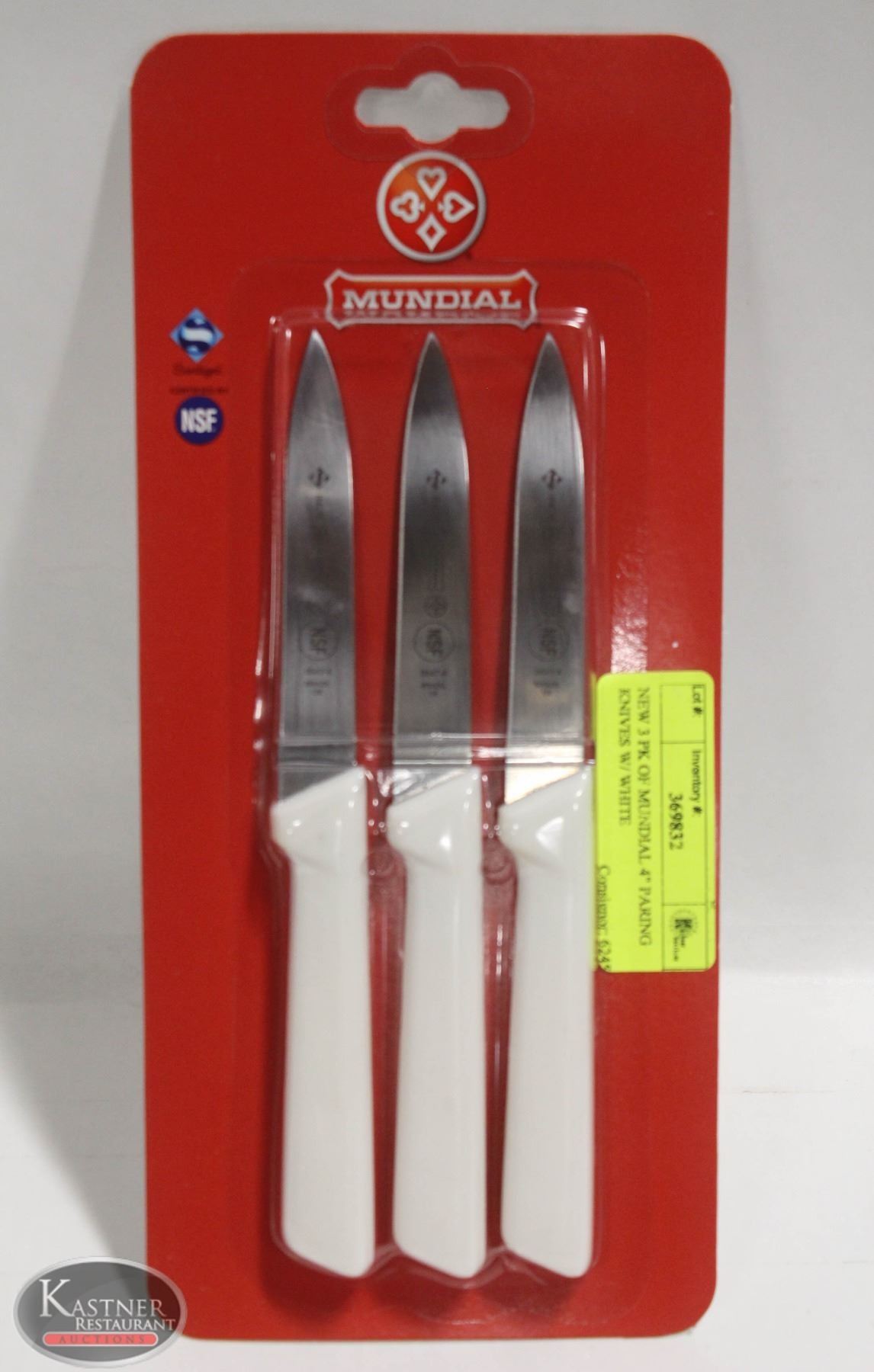 NEW 3 PK OF MUNDIAL 4" PARING KNIVES W/ WHITE