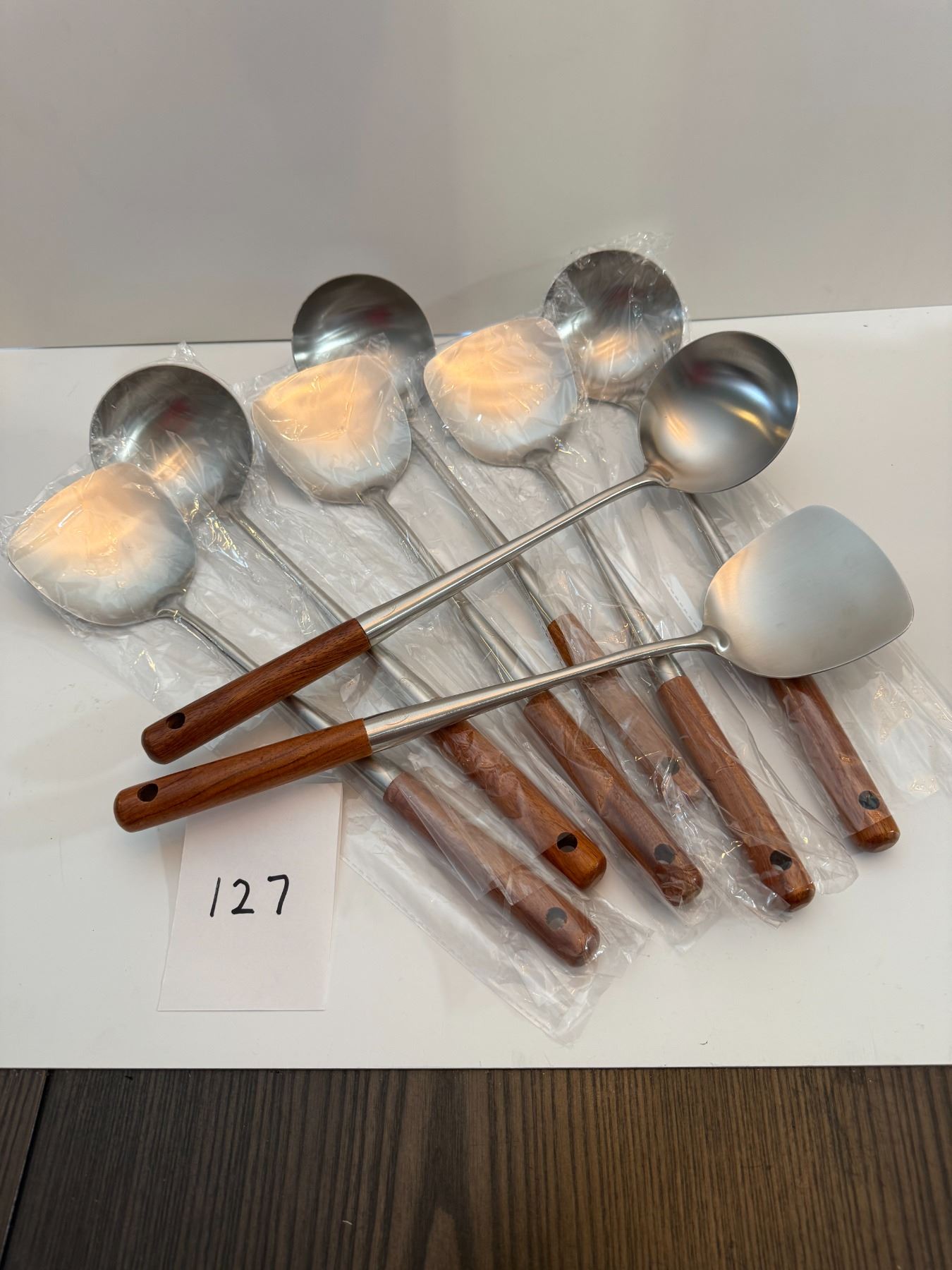NEW *** 4 set of Stainless Steel wok spatulas and ladles for stir-frying with wooden handles