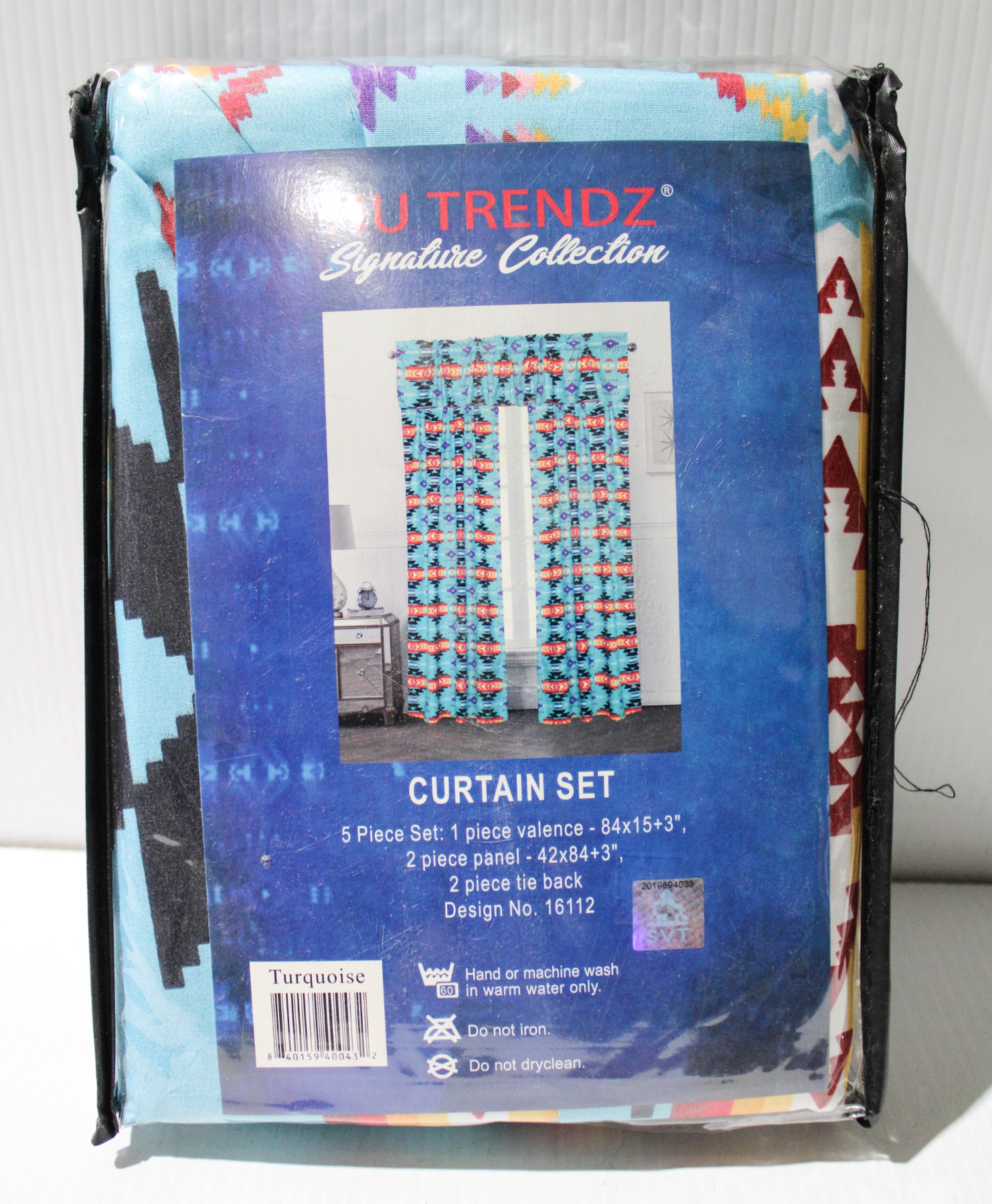 INCL. 1) VALENCE 84" X 15" X 3" - 2PC PANEL 42" X 84" + 3" & 2PC TIE BACK