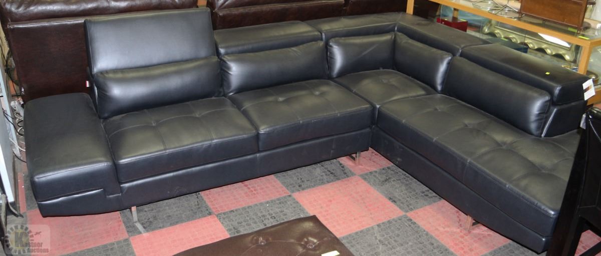 NEW BLACK LEATHERETTE LIFT BACK SECTIONAL