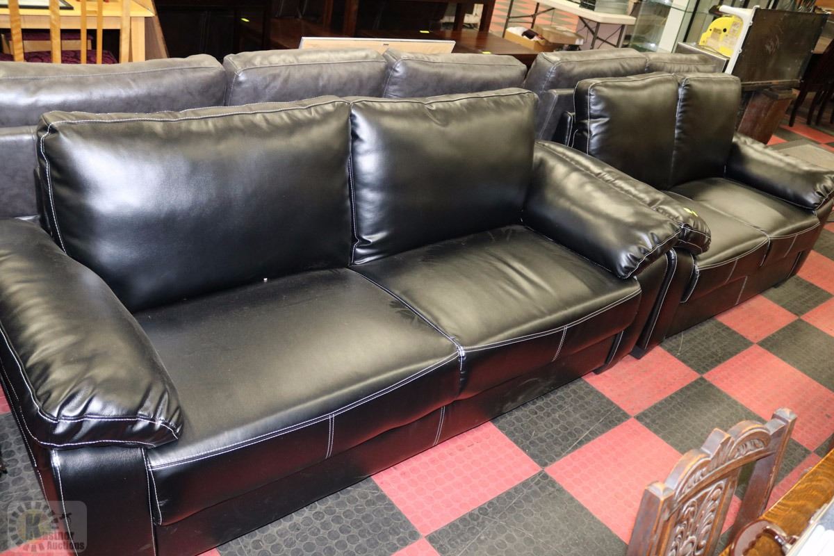 NEW BLACK LEATHERETTE WITH WHITE STITCHING SOFA