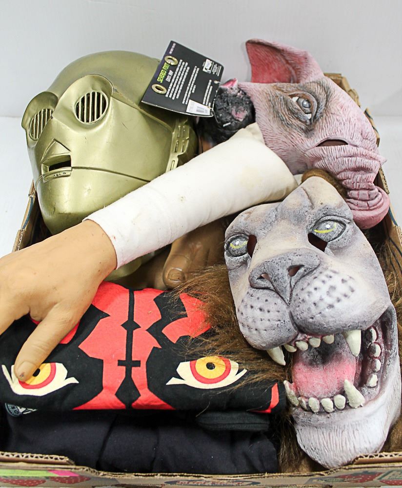 NEW BOX C3PO, PIG MASK, LION MASK, FAKE FOOT AND
