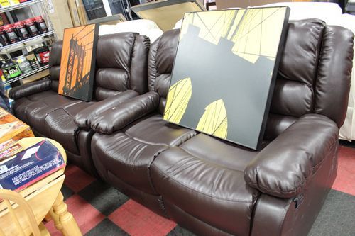 NEW BROWN LEATHER RECLINING SOFA AND LOVE SEAT