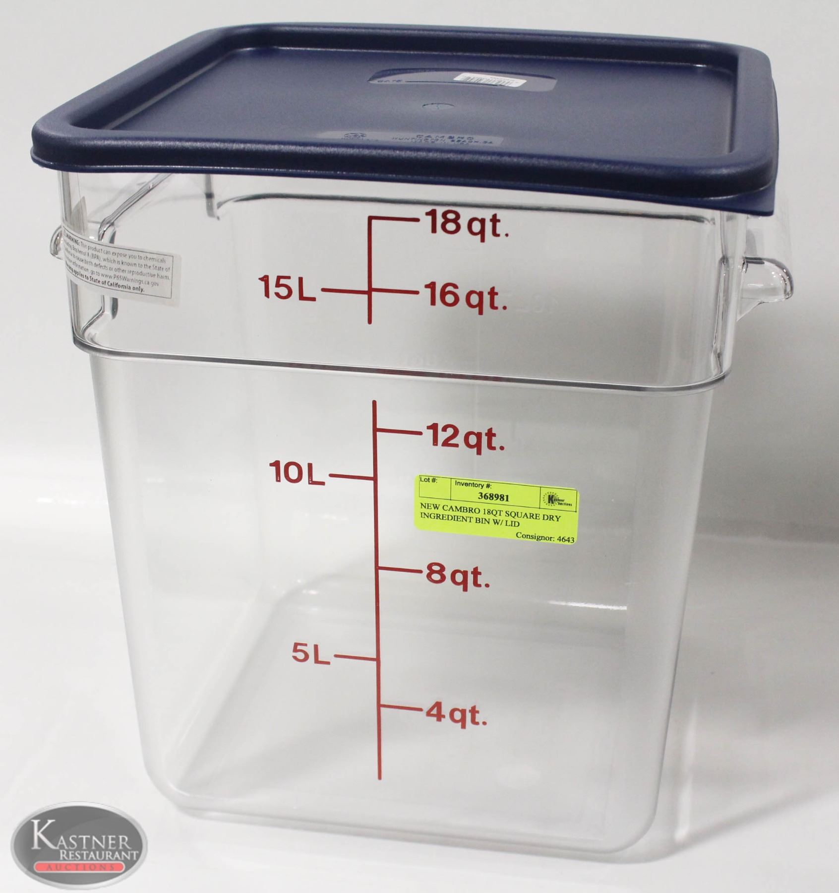 NEW CAMBRO 18QT SQUARE DRY INGREDIENT BIN W/ LID