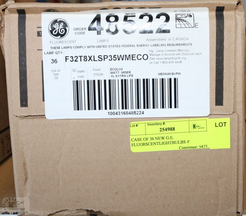NEW CASE OF 36 NEW G.E. FLUORSCENT LIGHTBULBS 4'