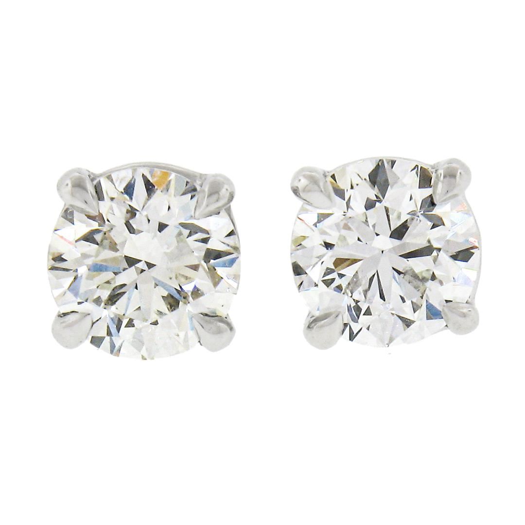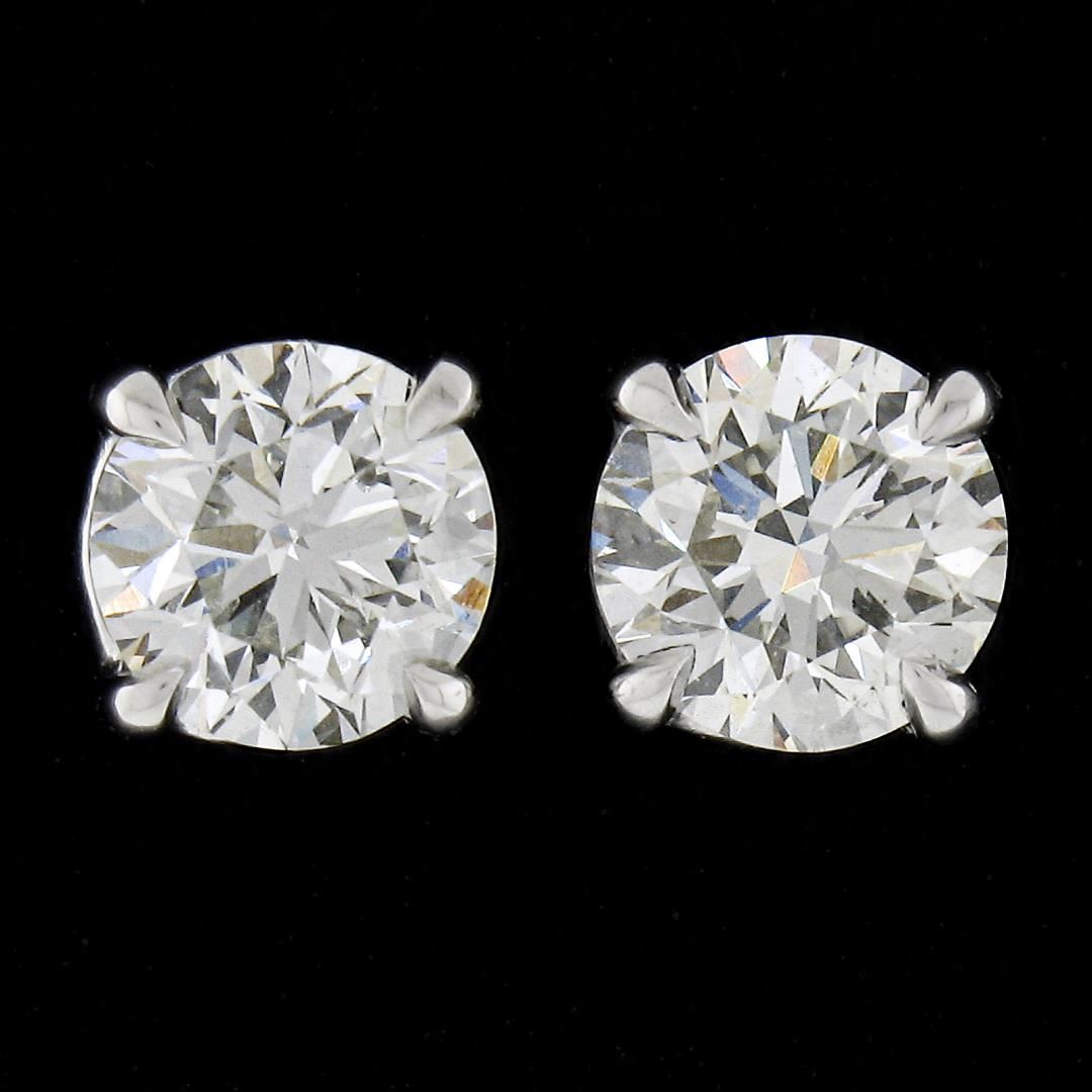 A new solid 14k white gold stud earrings, with 2 GIA graded round cut natural diamonds (H/I - SI1 ; 0.80ctw). The earrings measure approximately 4.6mm in diameter and weigh a total of 1.02 grams. Comes with all original relevant certifications.