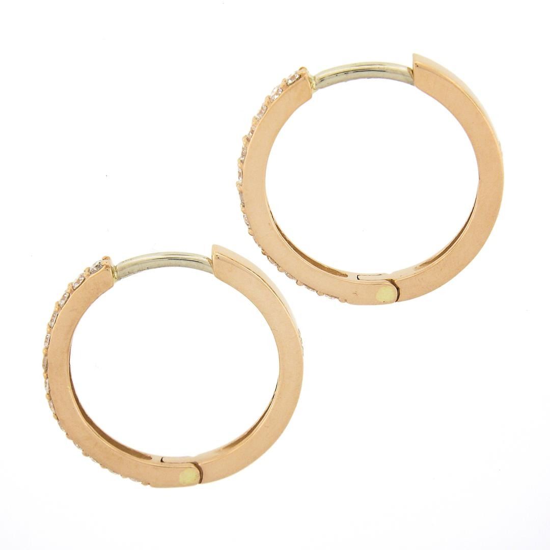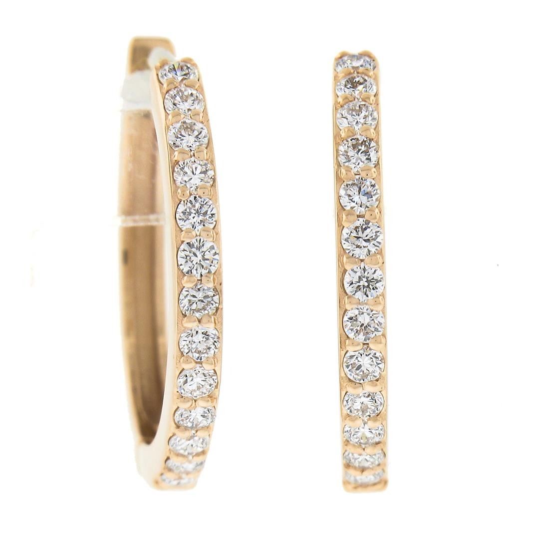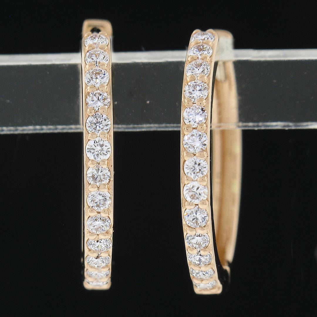 A new solid 14k rose gold hoop earrings, with 26 round brilliant cut natural diamonds (G/H - VS1/VS2 ; 0.26ctw). The earrings measure approximately 15.4x1.7mm and weigh a total of 1.88 grams.