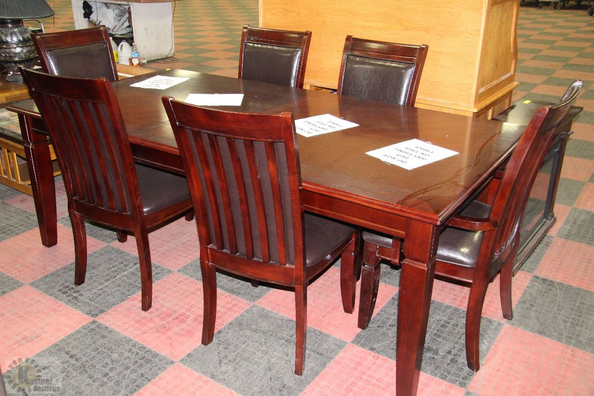 NEW DARK CHERRY WOOD LARGE TABLE WITH LEAF, FOUR